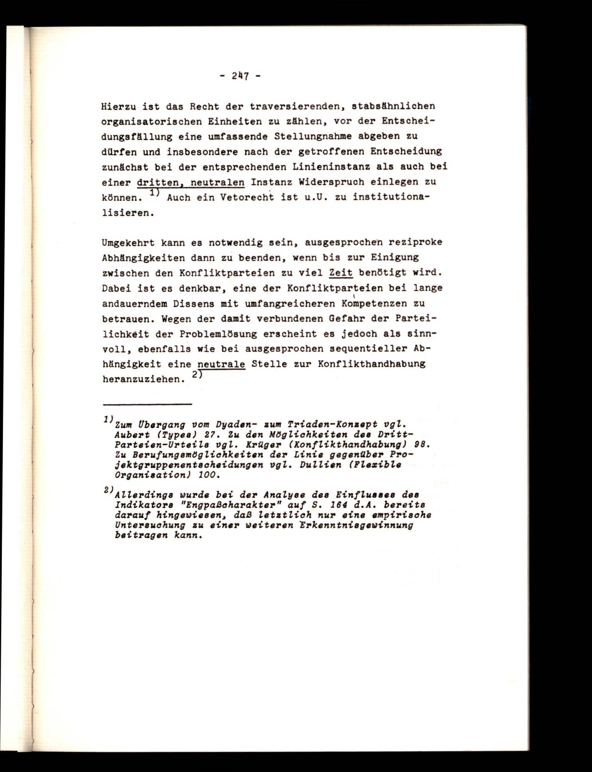 Aubert(Types) 27. Zu den Möglichkeiten des DrittParteien-Urteils vgl. Krüger(Konflikthandhabung) 98. Zu Berufungsmöglichkeiten der Linie gegenüber Projektgruppenentscheidungen vgl. Dullien(Flexible Organisation) 100.