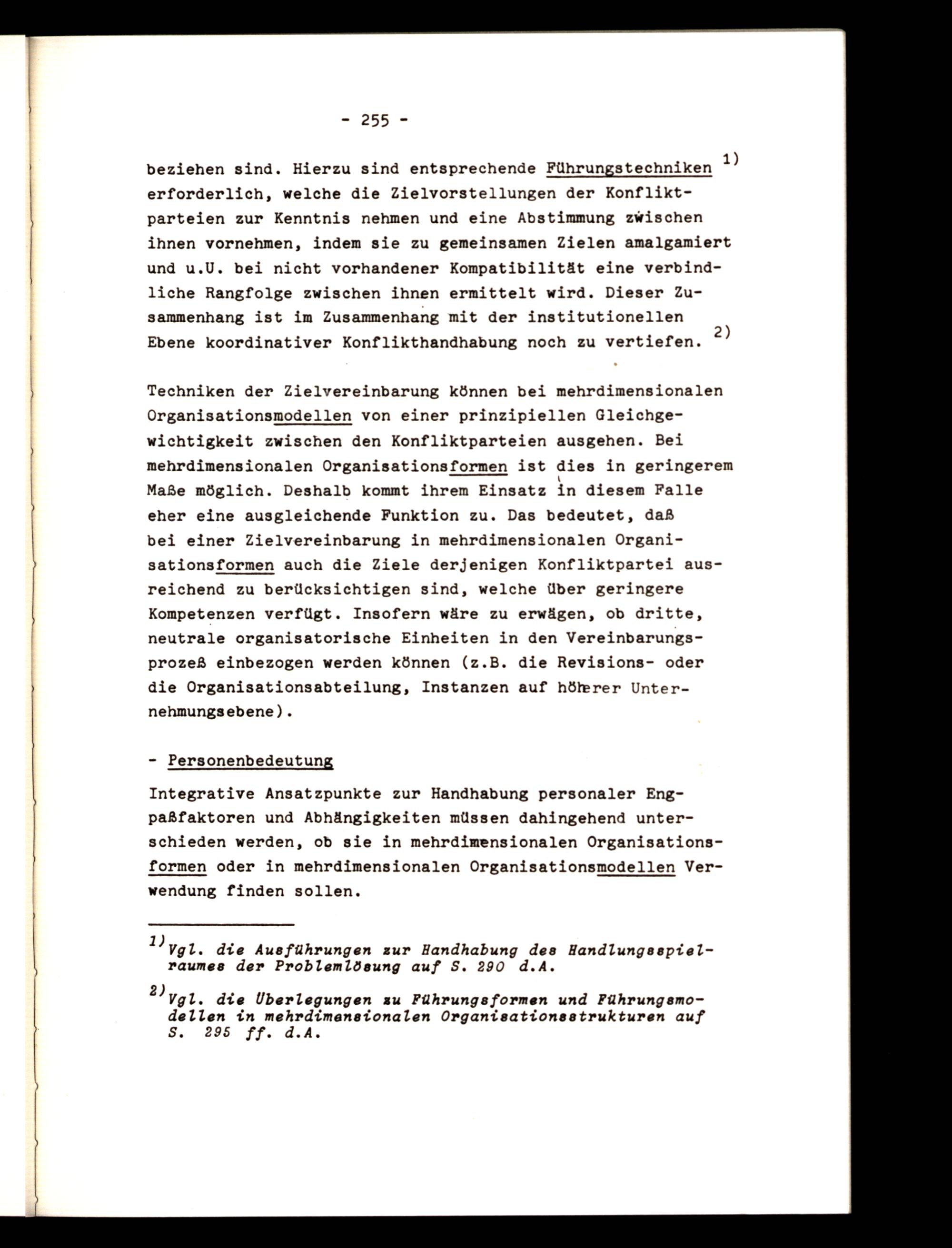 raumes der Problemlösung auf S. 290 d.A. 2) ygı, die Überlegungen zu Führungsformen und Führungsmodellen in mehrdimensionalen Organisationsstrukturen auf S. 295 ff. d.A.