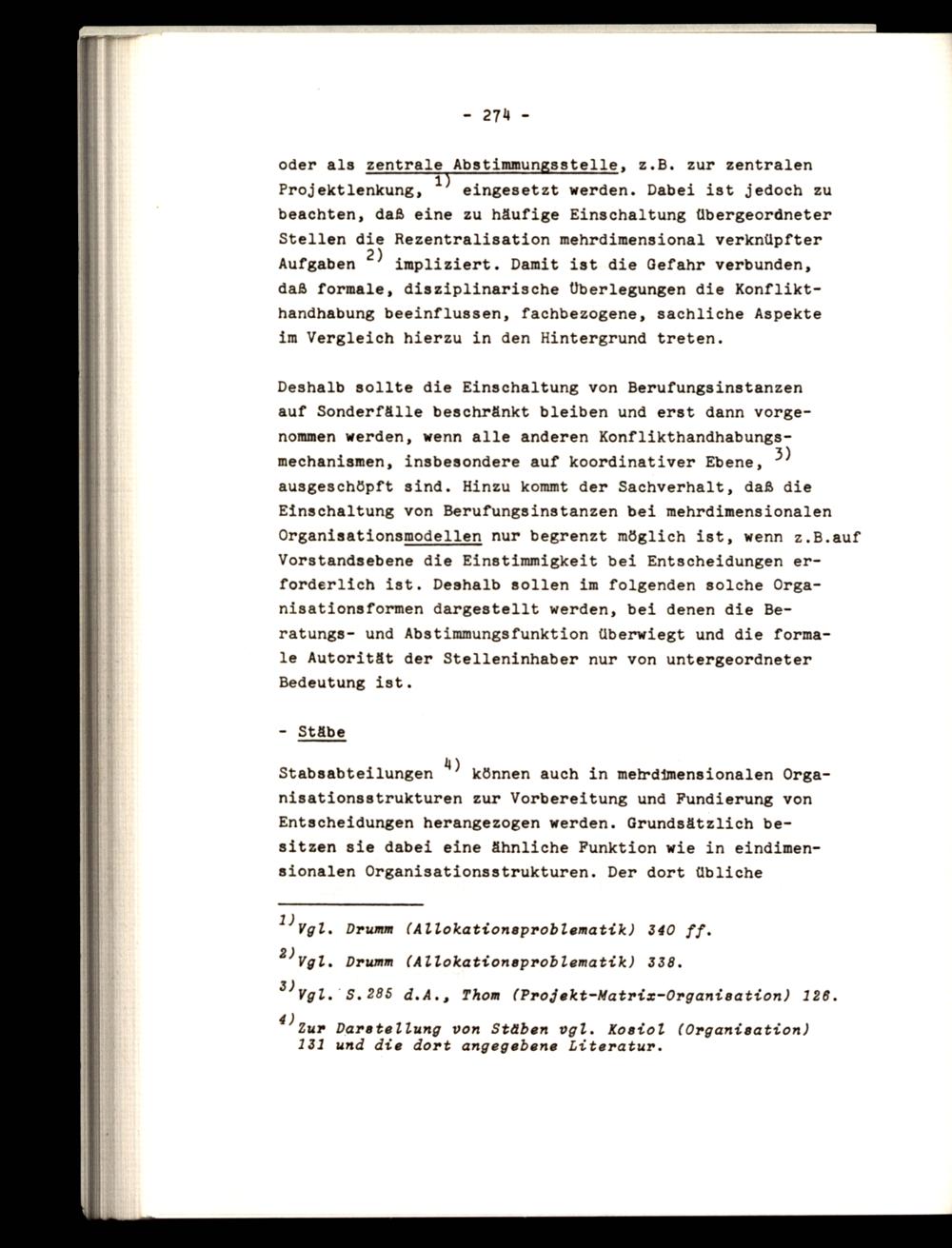 Projektlenkung, eingesetzt werden. Dabei ist jedoch zu beachten, daß eine zu häufige Einschaltung übergeoräneter Stellen die Rezentralisation mehrdimensional verknüpfter Aufgaben 2) impliziert. Damit ist die Gefahr verbunden, daß formale, disziplinarische Überlegungen die Konflikthandhabung beeinflussen, fachbezogene, sachliche Aspekte im Vergleich hierzu in den Hintergrund treten.