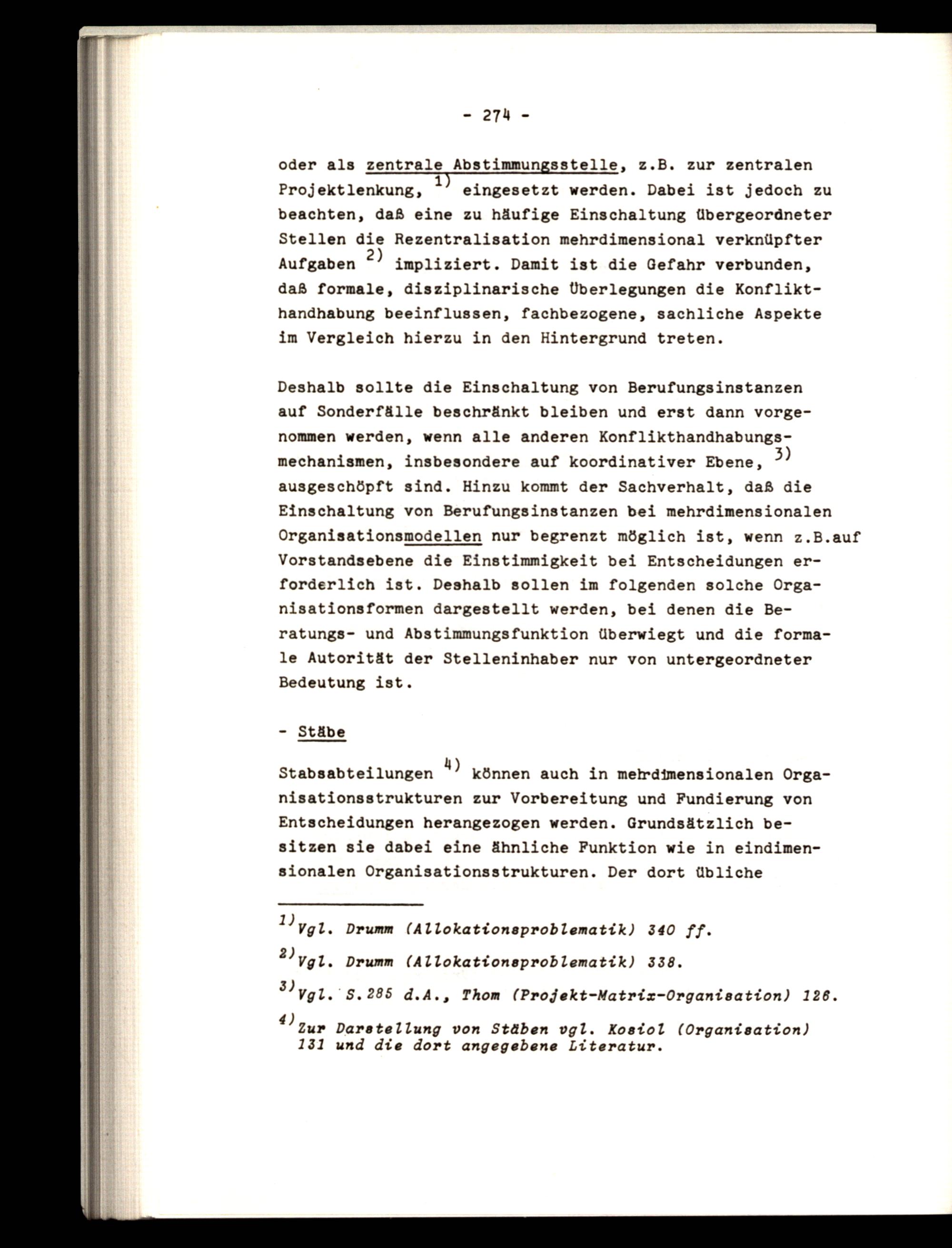 Deshalb sollte die Einschaltung von Berufungsinstanzen auf Sonderfälle beschränkt bleiben und erst dann vorgenommen werden, wenn alle anderen Konflikthandhabungsmechanismen, insbesondere auf koordinativer Ebene, 3) ausgeschöpft sind. Hinzu kommt der Sachverhalt, daß die Einschaltung von Berufungsinstanzen bei mehrdimensionalen Organisationsmodellen nur begrenzt möglich ist, wenn z.B.auf Vorstandsebene die Einstimmigkeit bei Entscheidungen erforderlich ist. Deshalb sollen im folgenden solche Organisationsformen dargestellt werden, bei denen die Beratungs- und Abstimmungsfunktion überwiegt und die formale Autorität der Stelleninhaber nur von untergeordneter Bedeutung ist.