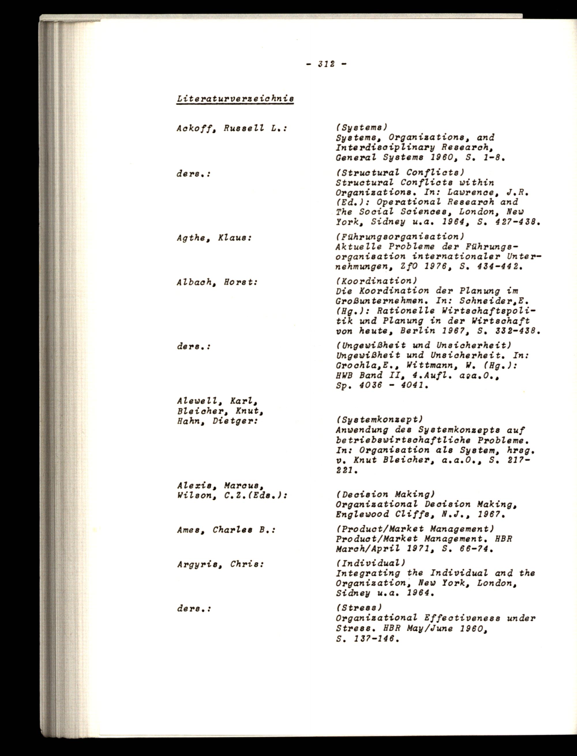 ders,:(Structural Conflicts) Structural Conflicts within Organizations, In: Laurence, J.R. (Ed.): Operational Research and The Social Sciences, London, New York, Sidney u.a, 1964, S, 427-438,