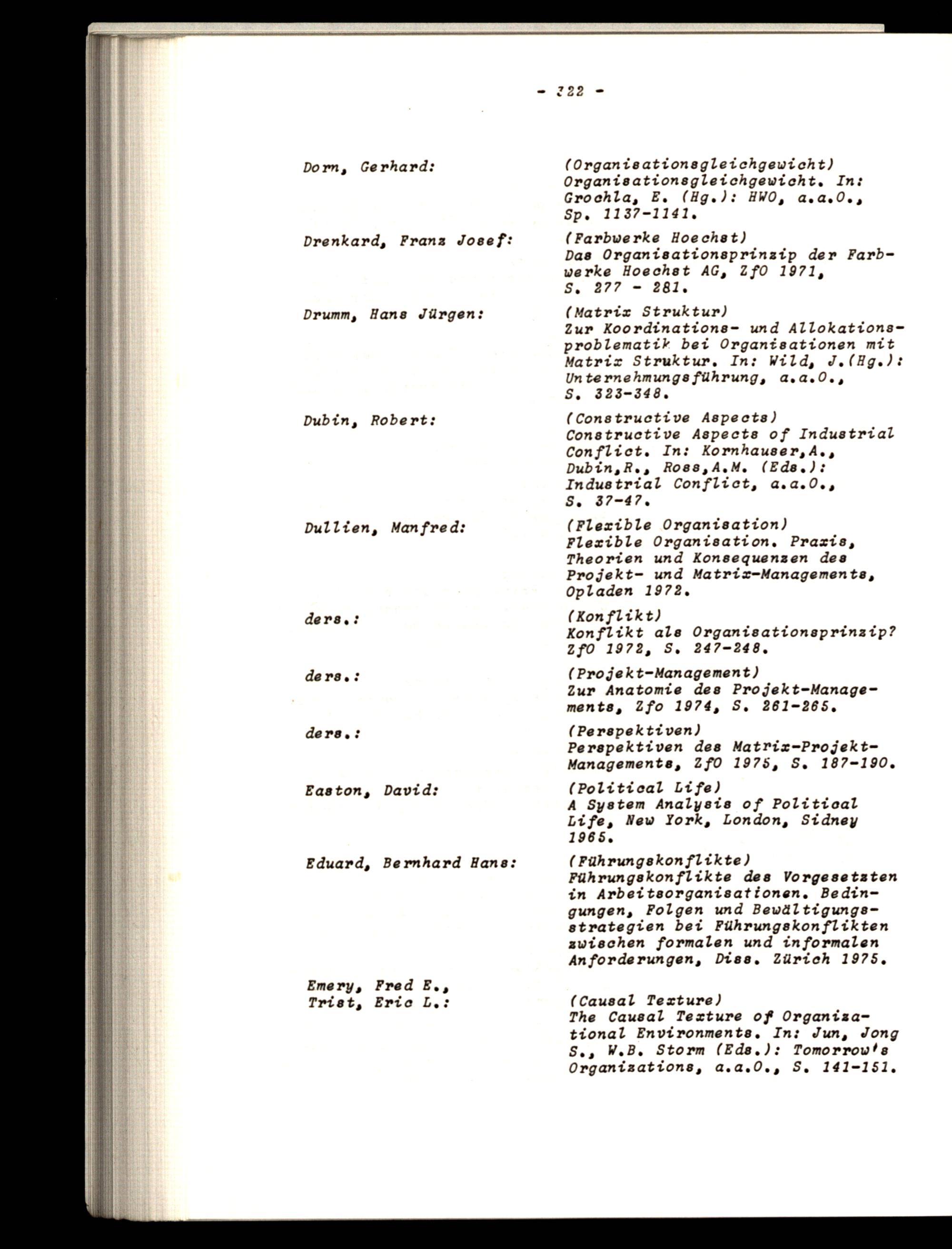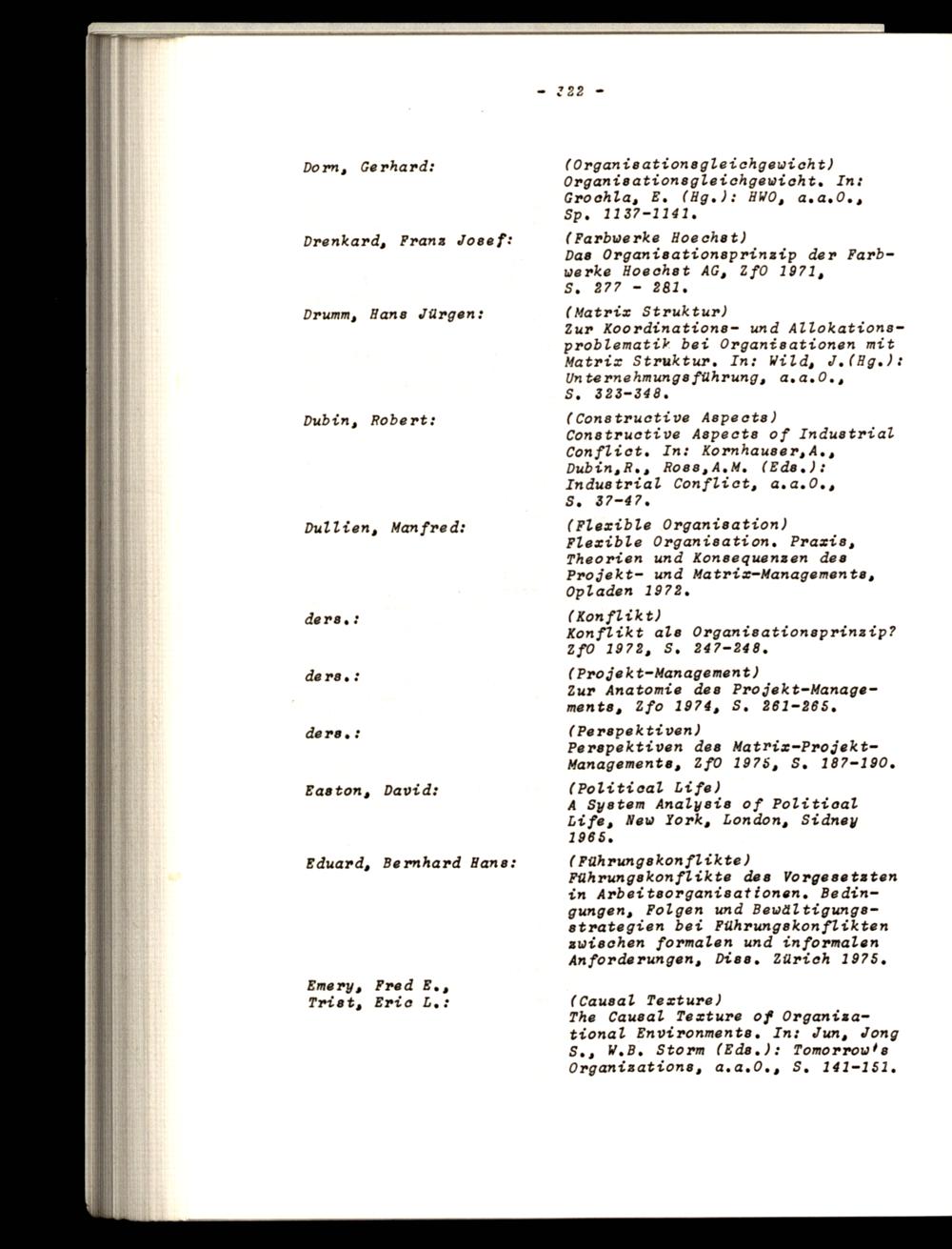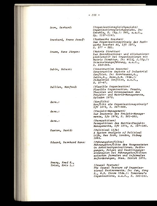 (Führungskonflikte) Führungskonflikte des Vorgesetzten in Arbeitsorganisationen, Bedingungen, Folgen und Bewältigungsstrategien bei Führungskonflikten zwischen formalen und informalen Anforderungen, Diss, Zürich 1975,