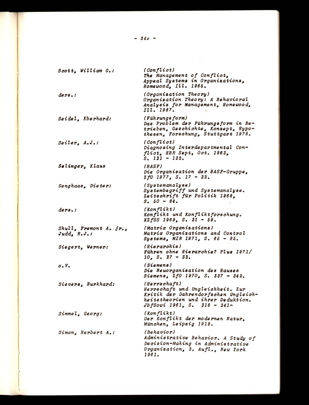 Scott, William G.:(Conflict) The Management of Conflict, Appeal Systems in Organizations, Homewood, Ill, 1965,