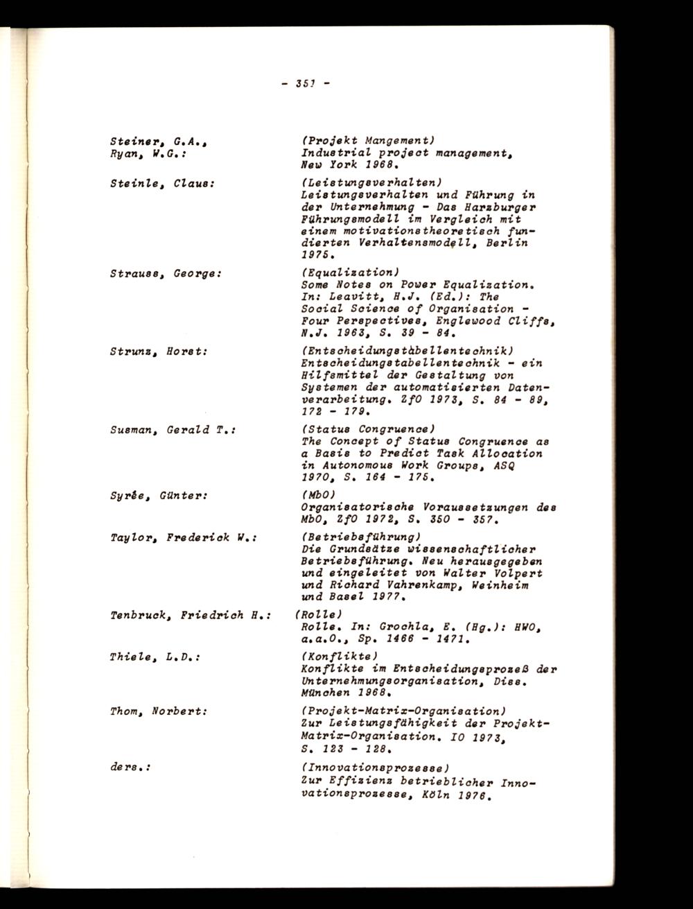 Thom, Norbert:(Projekt-Matrixz-Organisation) Zur Leistungsfähigkeit der ProjektMatrix-Organisation, IO 1973, S, 123- 128,