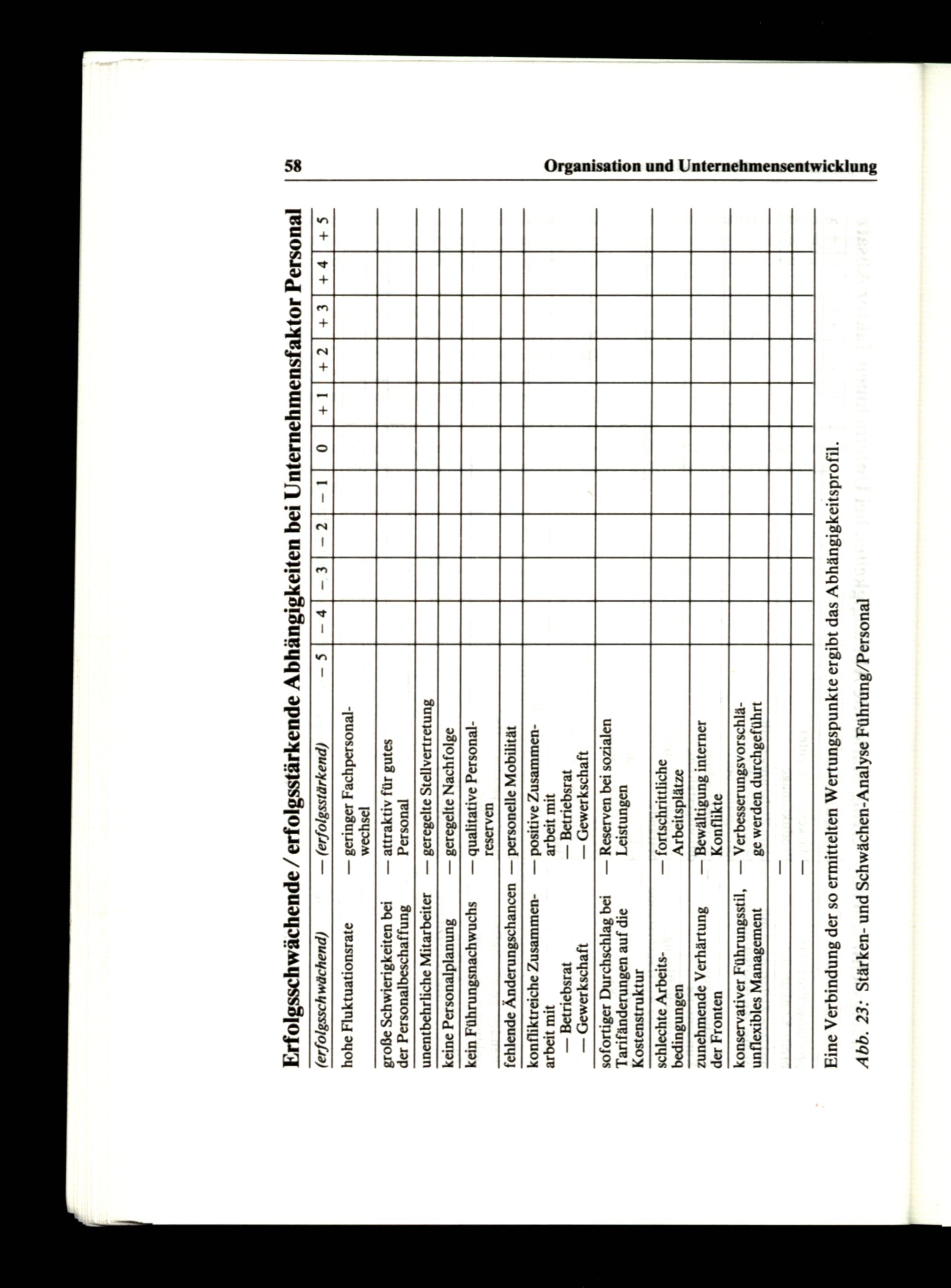 Eine Verbindung der so ermittelten Wertungspunkte ergibt das Abhängigkeitsprofil. Abb. 23: Stärken- und Schwächen-Analyse Führung/Personal