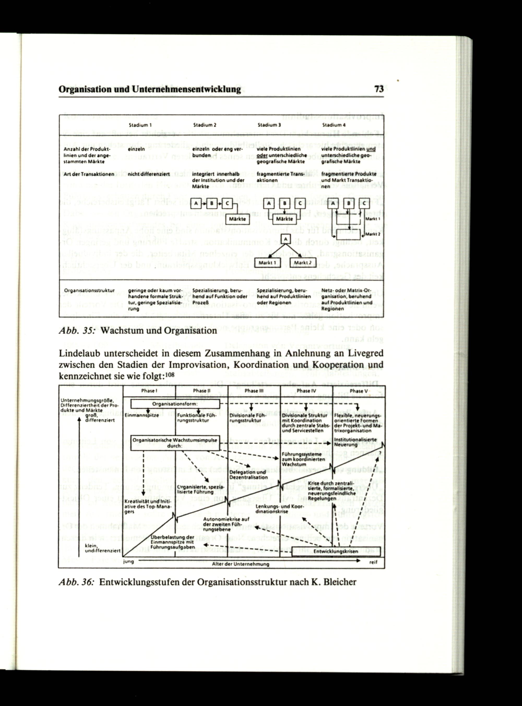 Abb. 36: Entwicklungsstufen der Organisationsstruktur nach K. Bleicher