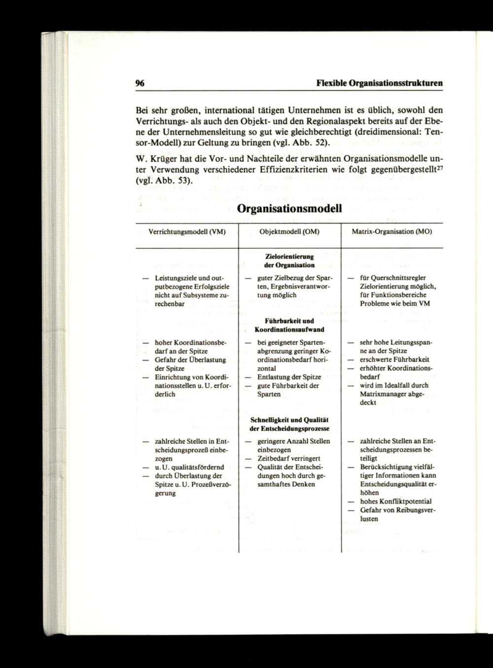 W. Krüger hat die Vor- und Nachteile der erwähnten Organisationsmodelle unter Verwendung verschiedener Effizienzkriterien wie folgt gegenübergestellt?’ (vgl. Abb. 53).