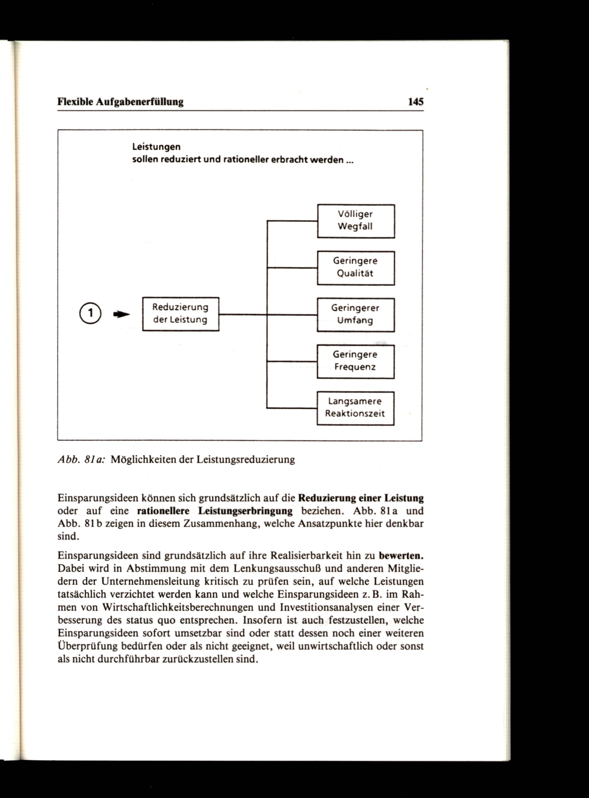 Einsparungsideen können sich grundsätzlich auf die Reduzierung einer Leistung oder auf eine rationellere Leistungserbringung beziehen. Abb. 81a und Abb. 81b zeigen in diesem Zusammenhang, welche Ansatzpunkte hier denkbar sind.