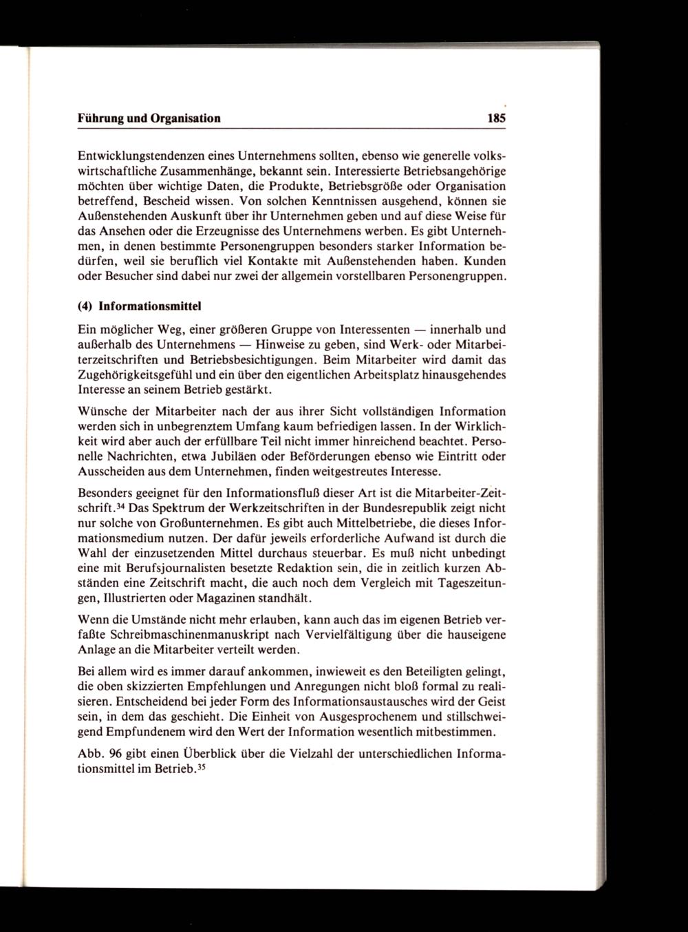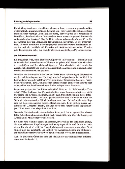 Besonders geeignet für den Informationsfluß dieser Art ist die Mitarbeiter-Zeitschrift.?* Das Spektrum der Werkzeitschriften in der Bundesrepublik zeigt nicht nur solche von Großunternehmen. Es gibt auch Mittelbetriebe, die dieses Informationsmedium nutzen. Der dafür jeweils erforderliche Aufwand ist durch die Wahl der einzusetzenden Mittel durchaus steuerbar. Es muß nicht unbedingt eine mit Berufsjournalisten besetzte Redaktion sein, die in zeitlich kurzen Abständen eine Zeitschrift macht, die auch noch dem Vergleich mit Tageszeitungen, Illustrierten oder Magazinen standhält.