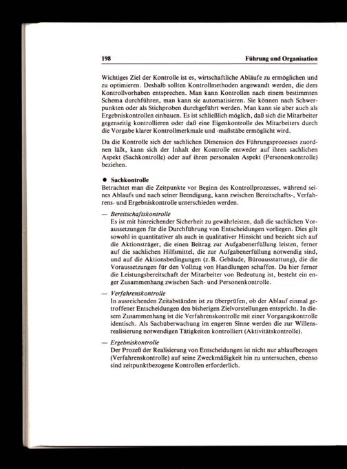 Da die Kontrolle sich der sachlichen Dimension des Führungsprozesses zuordnen läßt, kann sich der Inhalt der Kontrolle entweder auf ihren sachlichen Aspekt(Sachkontrolle) oder auf ihren personalen Aspekt(Personenkontrolle) beziehen.