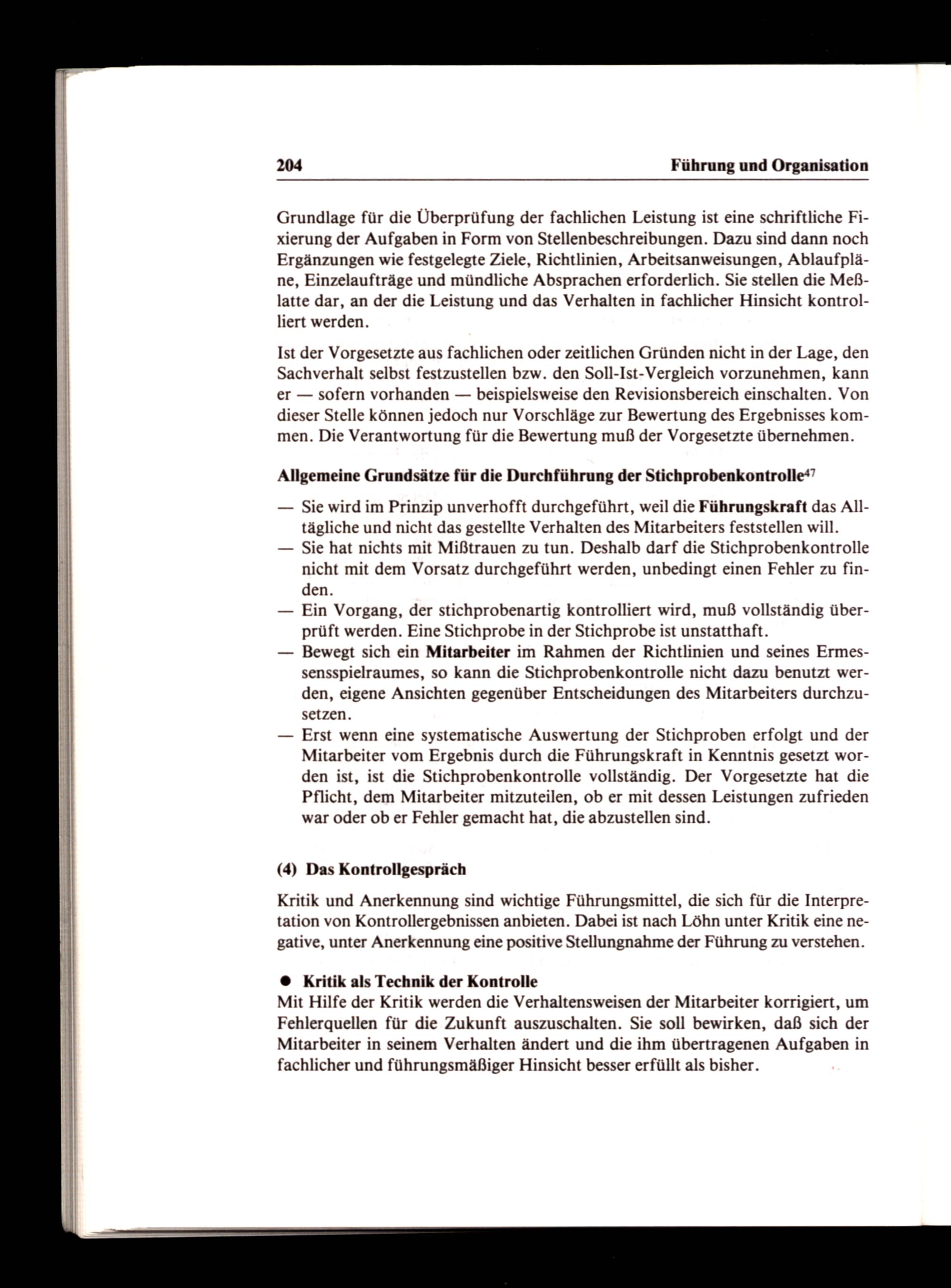 — Erst wenn eine systematische Auswertung der Stichproben erfolgt und der Mitarbeiter vom Ergebnis durch die Führungskraft in Kenntnis gesetzt worden ist, ist die Stichprobenkontrolle vollständig. Der Vorgesetzte hat die Pflicht, dem Mitarbeiter mitzuteilen, ob er mit dessen Leistungen zufrieden war oder ob er Fehler gemacht hat, die abzustellen sind.