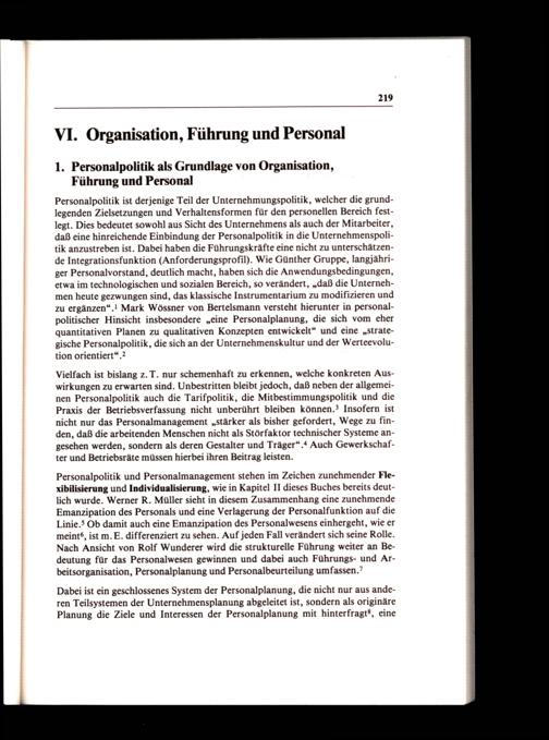 Personalpolitik ist derjenige Teil der Unternehmungspolitik, welcher die grundlegenden Zielsetzungen und Verhaltensformen für den personellen Bereich festlegt. Dies bedeutet sowohl aus Sicht des Unternehmens als auch der Mitarbeiter, daß eine hinreichende Einbindung der Personalpolitik in die Unternehmenspolitik anzustreben ist. Dabei haben die Führungskräfte eine nicht zu unterschätzende Integrationsfunktion(Anforderungsprofil). Wie Günther Gruppe, langjähriger Personalvorstand, deutlich macht, haben sich die Anwendungsbedingungen, etwa im technologischen und sozialen Bereich, so verändert,„daß die Unternehmen heute gezwungen sind, das klassische Instrumentarium zu modifizieren und zu ergänzen“.! Mark Wössner von Bertelsmann versteht hierunter in personalpolitischer Hinsicht insbesondere„eine Personalplanung, die sich vom eher quantitativen Planen zu qualitativen Konzepten entwickelt“ und eine„strategische Personalpolitik, die sich an der Unternehmenskultur und der Werteevolution orientiert“.?