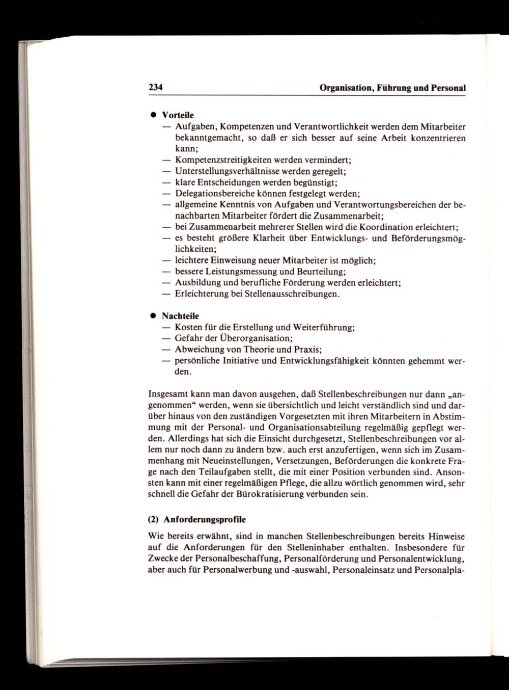 Wie bereits erwähnt, sind in manchen Stellenbeschreibungen bereits Hinweise auf die Anforderungen für den Stelleninhaber enthalten. Insbesondere für Zwecke der Personalbeschaffung, Personalförderung und Personalentwicklung, aber auch für Personalwerbung und-auswahl, Personaleinsatz und Personalpla