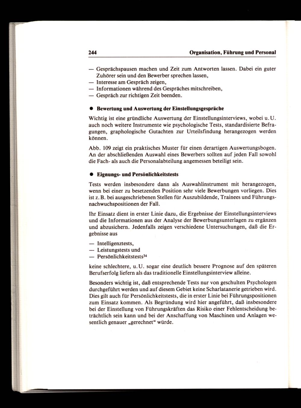 Abb. 109 zeigt ein praktisches Muster für einen derartigen Auswertungsbogen. An der abschließenden Auswahl eines Bewerbers sollten auf jeden Fall sowohl die Fach- als auch die Personalabteilung angemessen beteiligt sein.