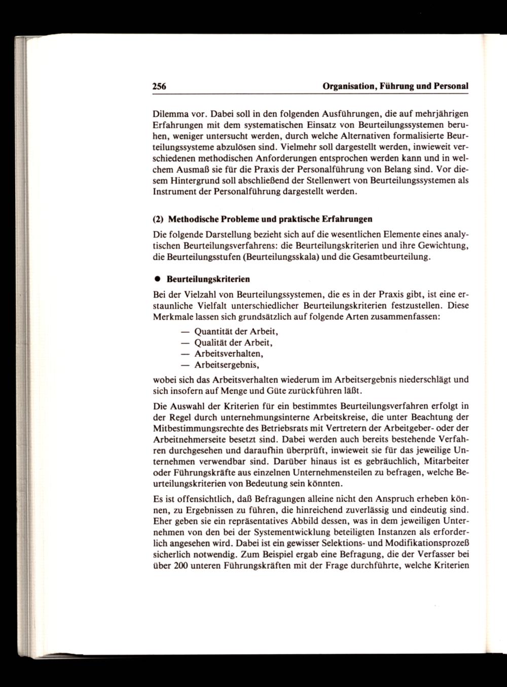 Dilemma vor. Dabei soll in den folgenden Ausführungen, die auf mehrjährigen Erfahrungen mit dem systematischen Einsatz von Beurteilungssystemen beruhen, weniger untersucht werden, durch welche Alternativen formalisierte Beurteilungssysteme abzulösen sind. Vielmehr soll dargestellt werden, inwieweit verschiedenen methodischen Anforderungen entsprochen werden kann und in welchem Ausmaß sie für die Praxis der Personalführung von Belang sind. Vor diesem Hintergrund soll abschließend der Stellenwert von Beurteilungssystemen als Instrument der Personalführung dargestellt werden.