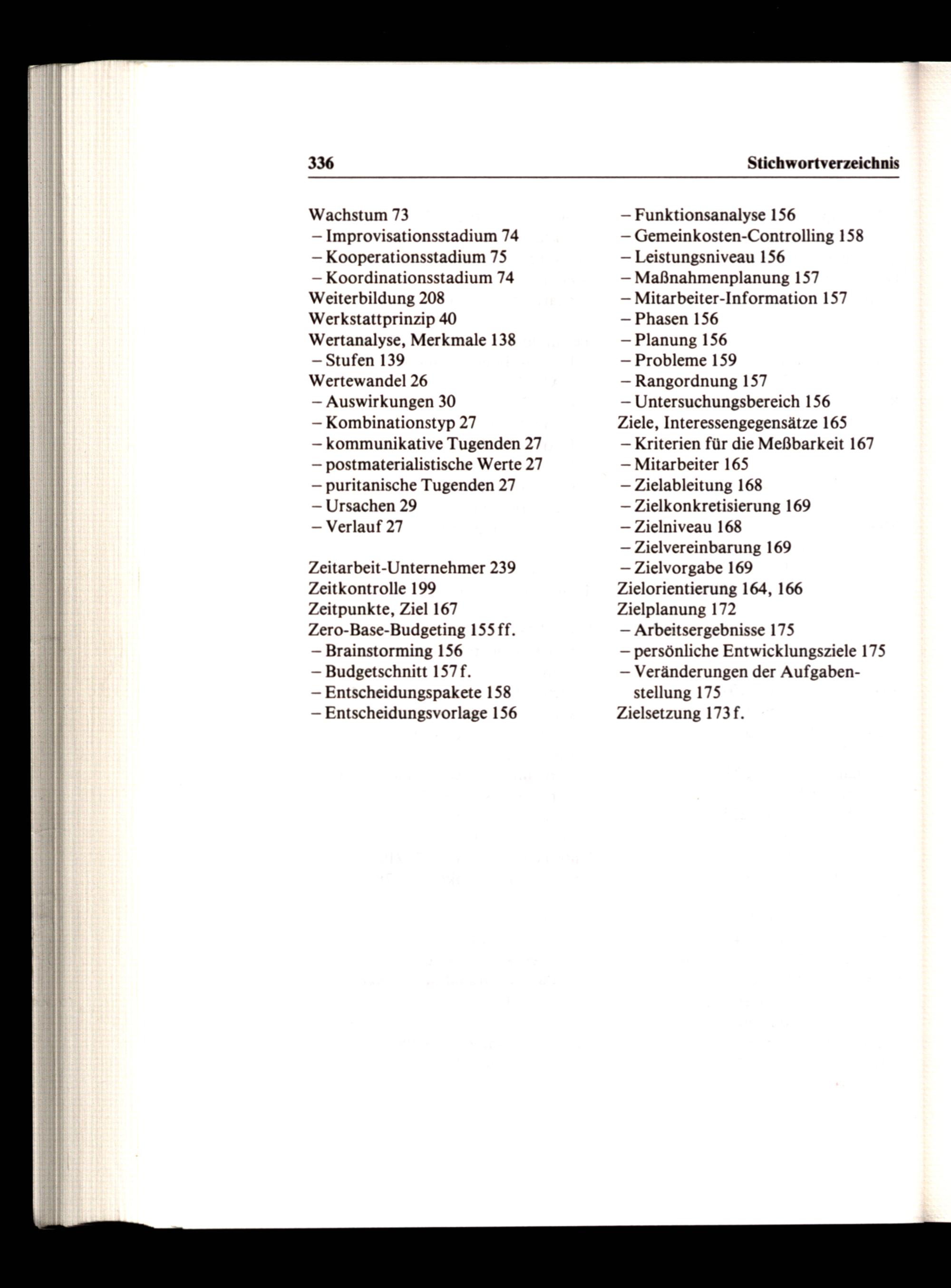 Zeitarbeit-Unternehmer 239 Zeitkontrolle 199 Zeitpunkte, Ziel 167 Zero-Base-Budgeting 155ff. — Brainstorming 156