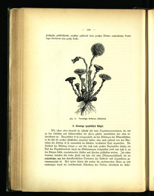 Wie schon oben bemerkt ist, schließt sich diese Vsgetationsformation, die mit zu den schönsten und blütenreichsten der Flora gehört, unmittelbar den oben besprochenen an. Ausgebildet ist sie vorzugsweise an den Abhängen der Diluvialhöhen, in die sich die großen Flußbetten eingesägt haben, aber auch entfernt von den Uferhöhen der Ströme ist sie namentlich im östlichen, trockeneren Teile anzutreffen. Die Steilheit der Abhänge bringt es mit sich, daß nach großen Regengüssen häufig ein Teil der Vegetationsdecke durch die Wassermengen fortgerissen wird und daß so an den Hängen kahle, vegetationslose Stellen und Furchen geschaffen werden. s)m ersten Sommer bedecken sich solche Flecke fast stets mit einer sDflanzengesellfchaft, die im wesentlichen aus den charakteristischen Vertretern der Ruderal- und Segetalflora zusammengesetzt ist. Erst später siedeln sich wieder die ausdauernden Arten an und verdrängen durch die fortschreitende Bedeckung des Bodens allmählich die Acker-