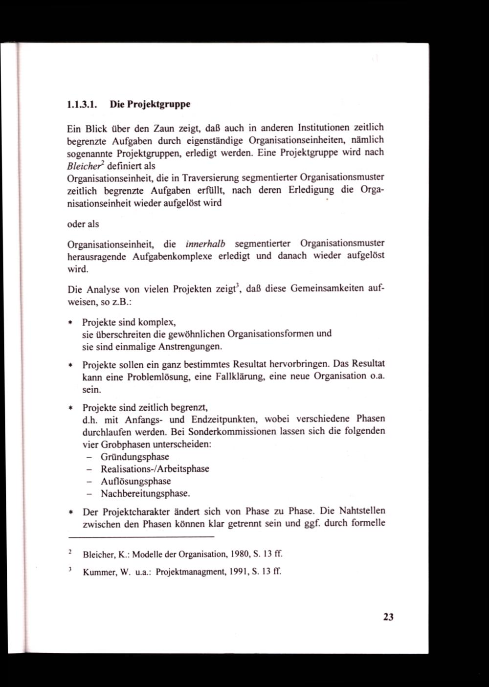 Kummer, W. u.a.: Projektmanagment, 1991, S. 13 ff.