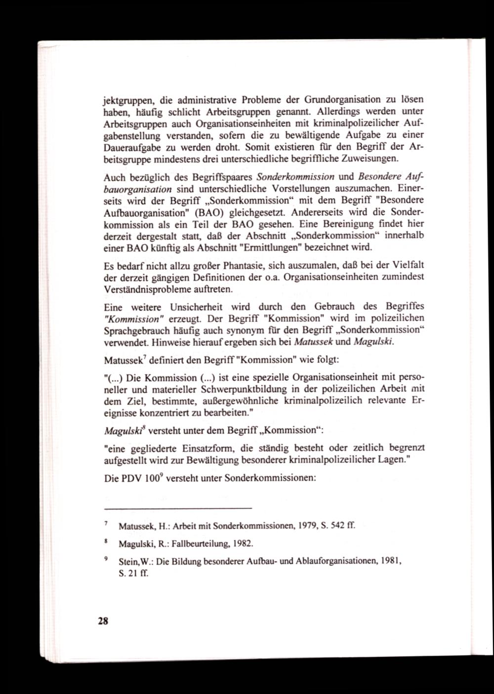 Eine weitere Unsicherheit wird durch den Gebrauch des Begriffes "Kommission" erzeugt. Der Begriff"Kommission" wird im polizeilichen Sprachgebrauch häufig auch synonym für den Begriff„Sonderkommission“ verwendet. Hinweise hierauf ergeben sich bei Matussek und Magulski.