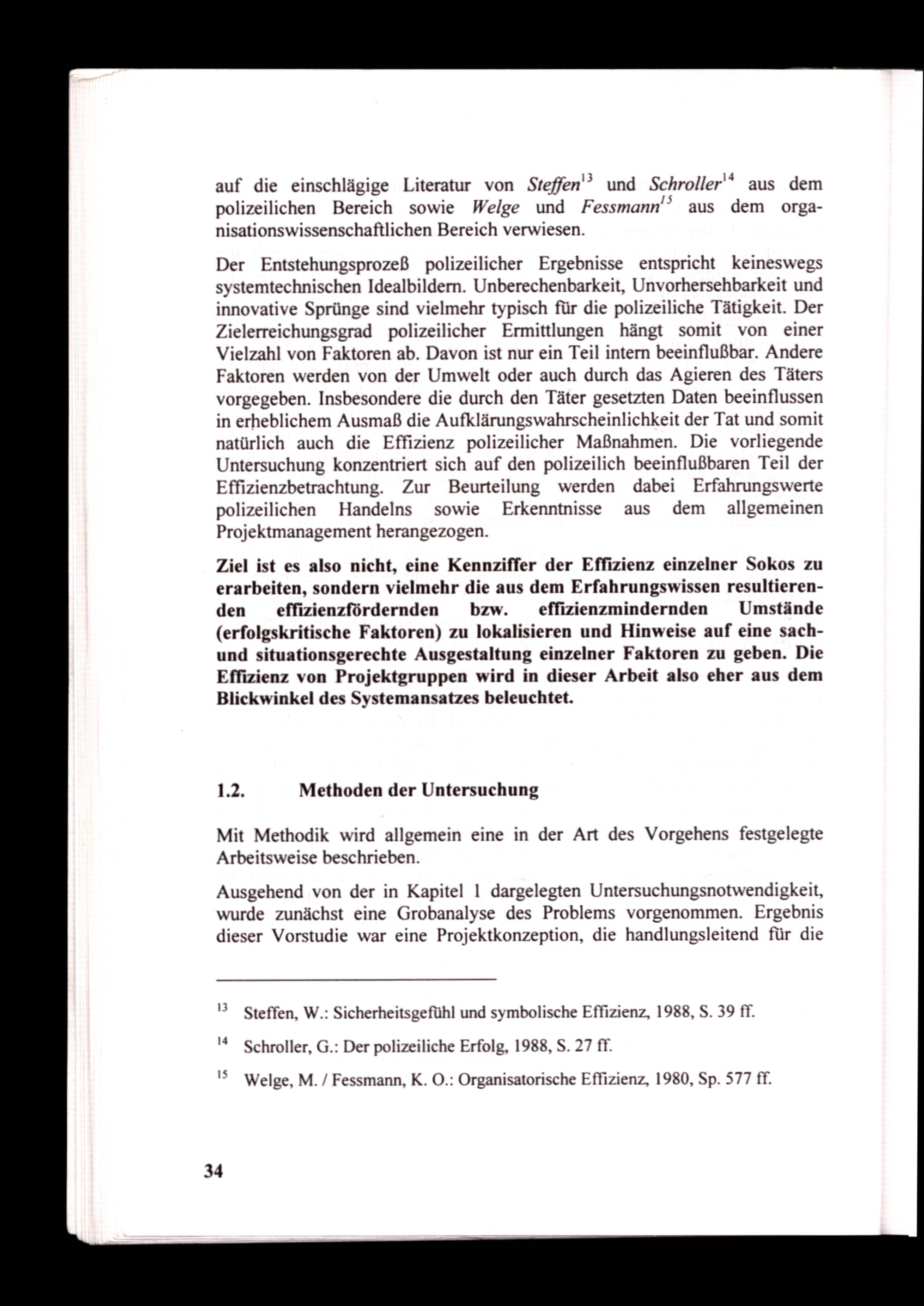 auf die einschlägige Literatur von Steffen‘? und Schroller'* aus dem polizeilichen Bereich sowie Welge und Fessmann'®* aus dem organisationswissenschaftlichen Bereich verwiesen.