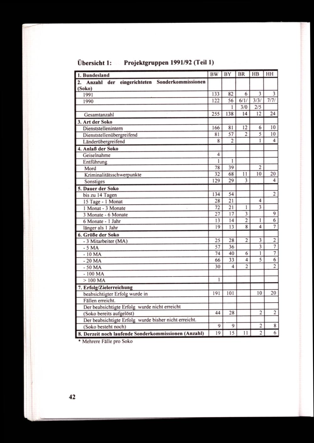 Übersicht 1: Projektgruppen 1991/92(Teil 1) (1. Bundesland|BW|BY[BR_|HB_|HH|