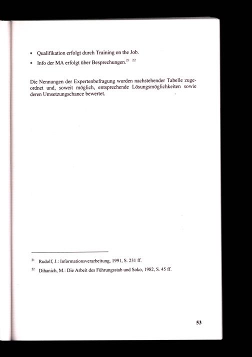 21 Rudolf, J.: Informationsverarbeitung, 1991, S. 231 ff. 22 Dihanich, M.: Die Arbeit des Führungsstab und Soko, 1982, S. 45 ff.