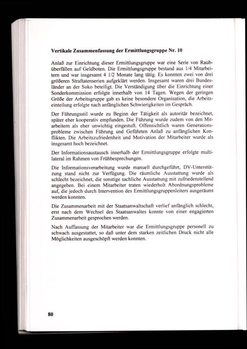 Vertikale Zusammenfassung der Ermittlungsgruppe Nr. 10