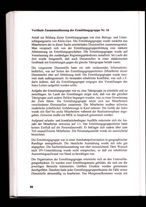Vertikale Zusammenfassung der Ermittlungsgruppe Nr. 16