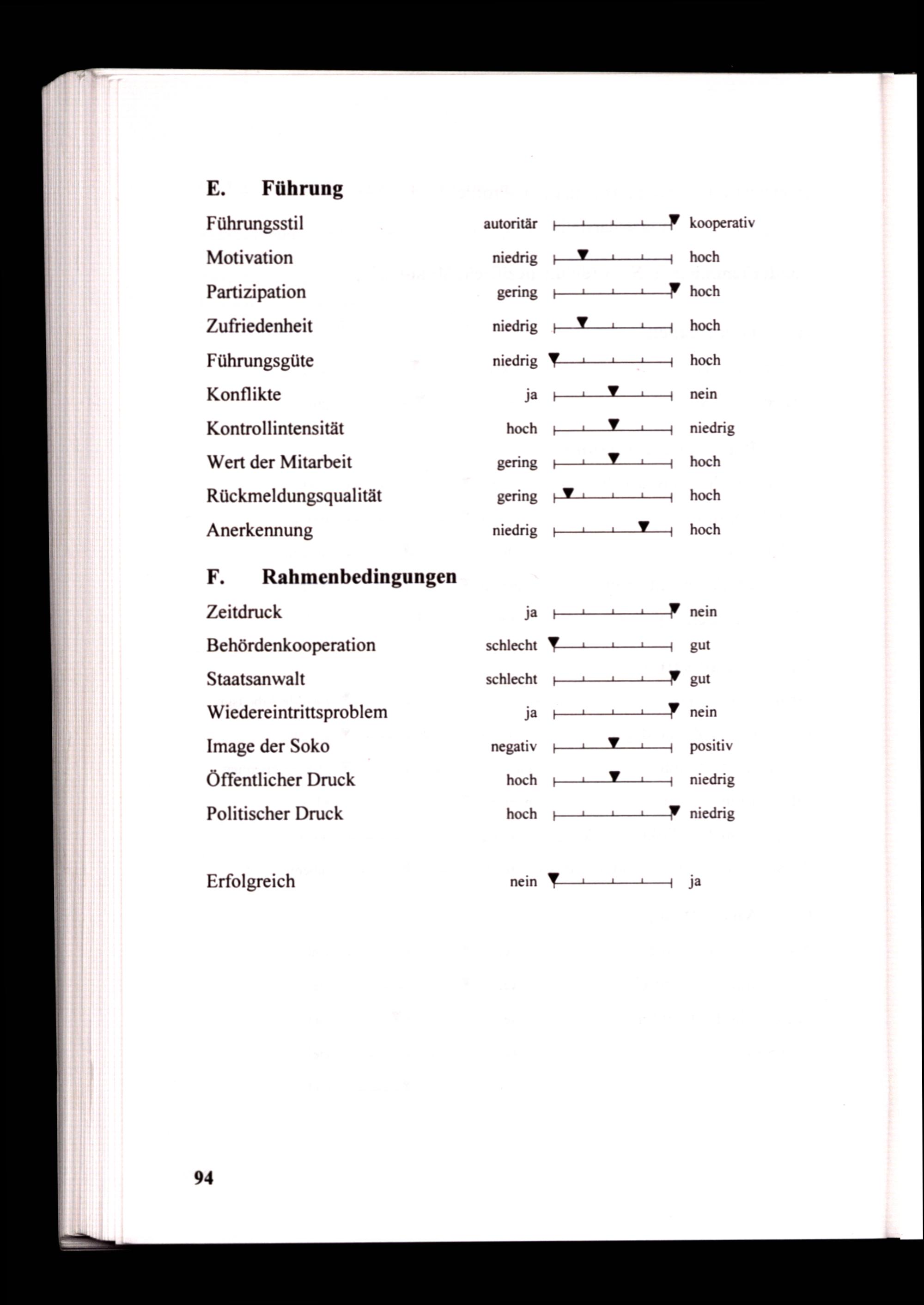 Zeitdruck ja nein Behördenkooperation schlecht gut Staatsanwalt schlecht gut Wiedereintrittsproblem ja nein Image der Soko negativ positiv Öffentlicher Druck hoch niedrig