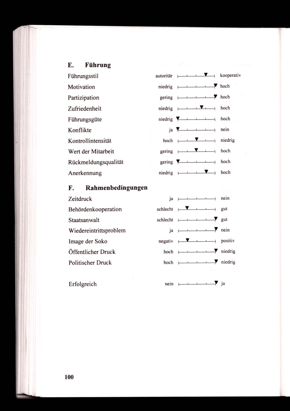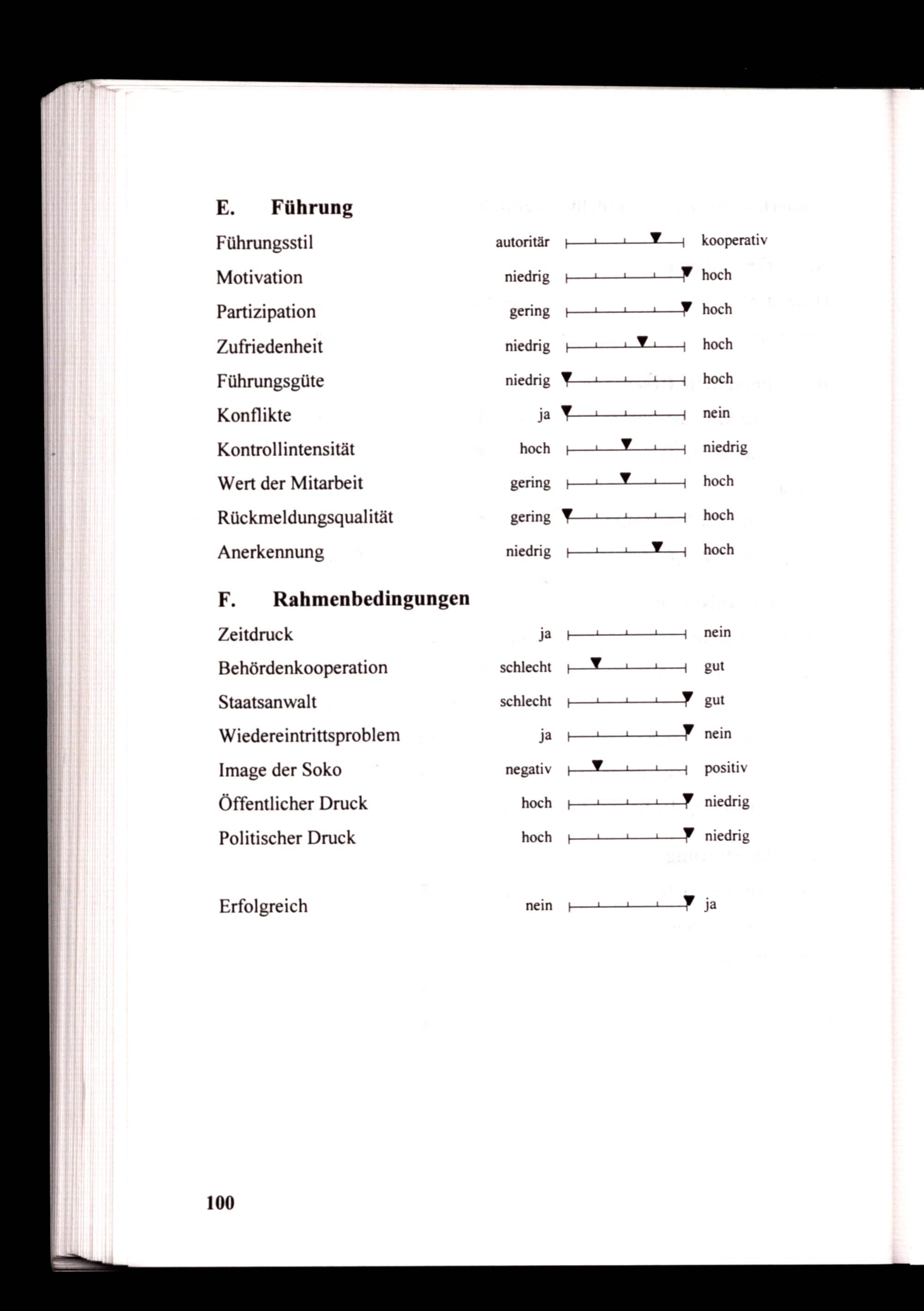 E. Führung Führungsstil Motivation Partizipation Zufriedenheit Führungsgüte Konflikte Kontrollintensität Wert der Mitarbeit Rückmeldungsqualität