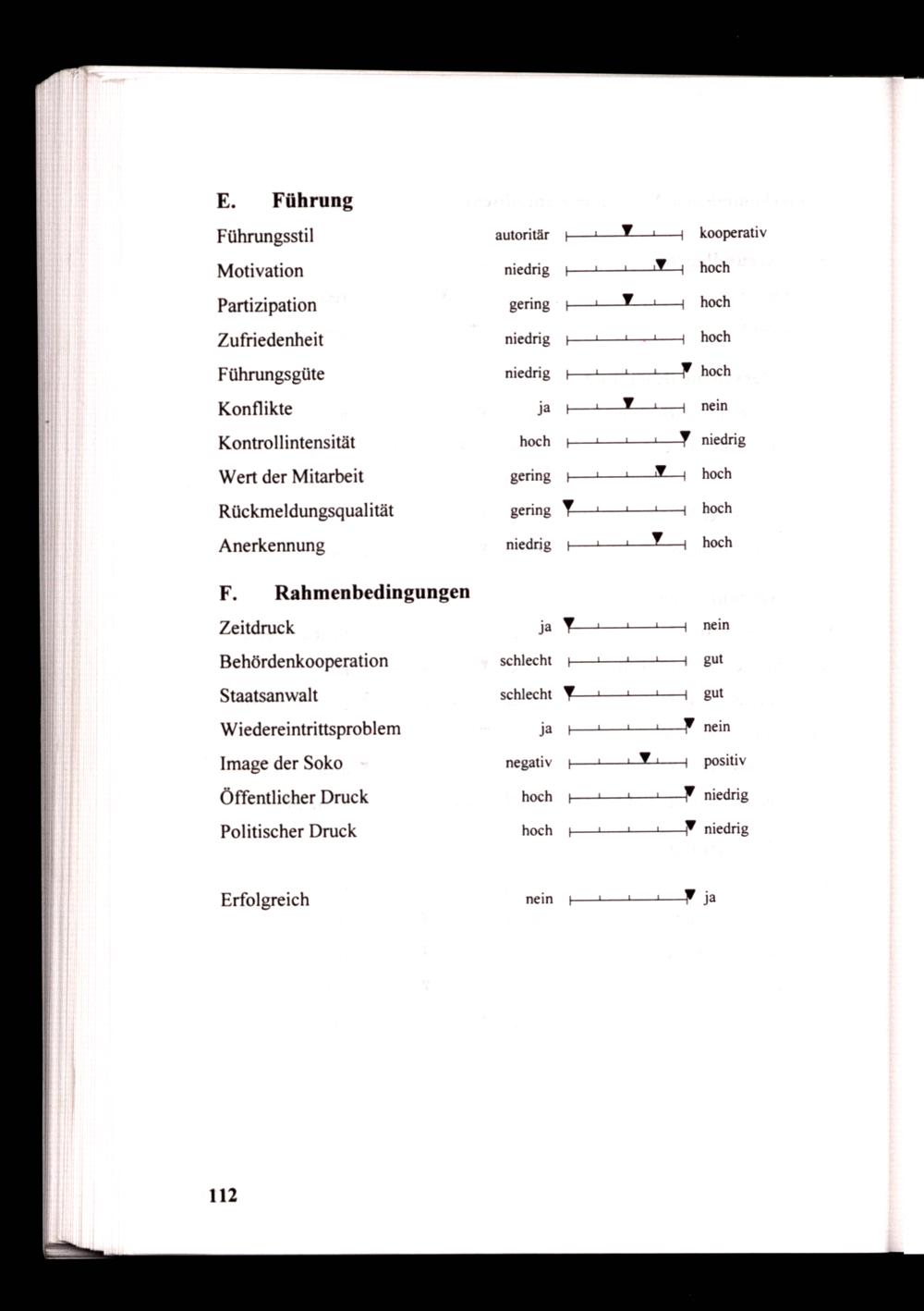 E. Führung Führungsstil Motivation Partizipation Zufriedenheit Führungsgüte Konflikte Kontrollintensität Wert der Mitarbeit Rückmeldungsqualität
