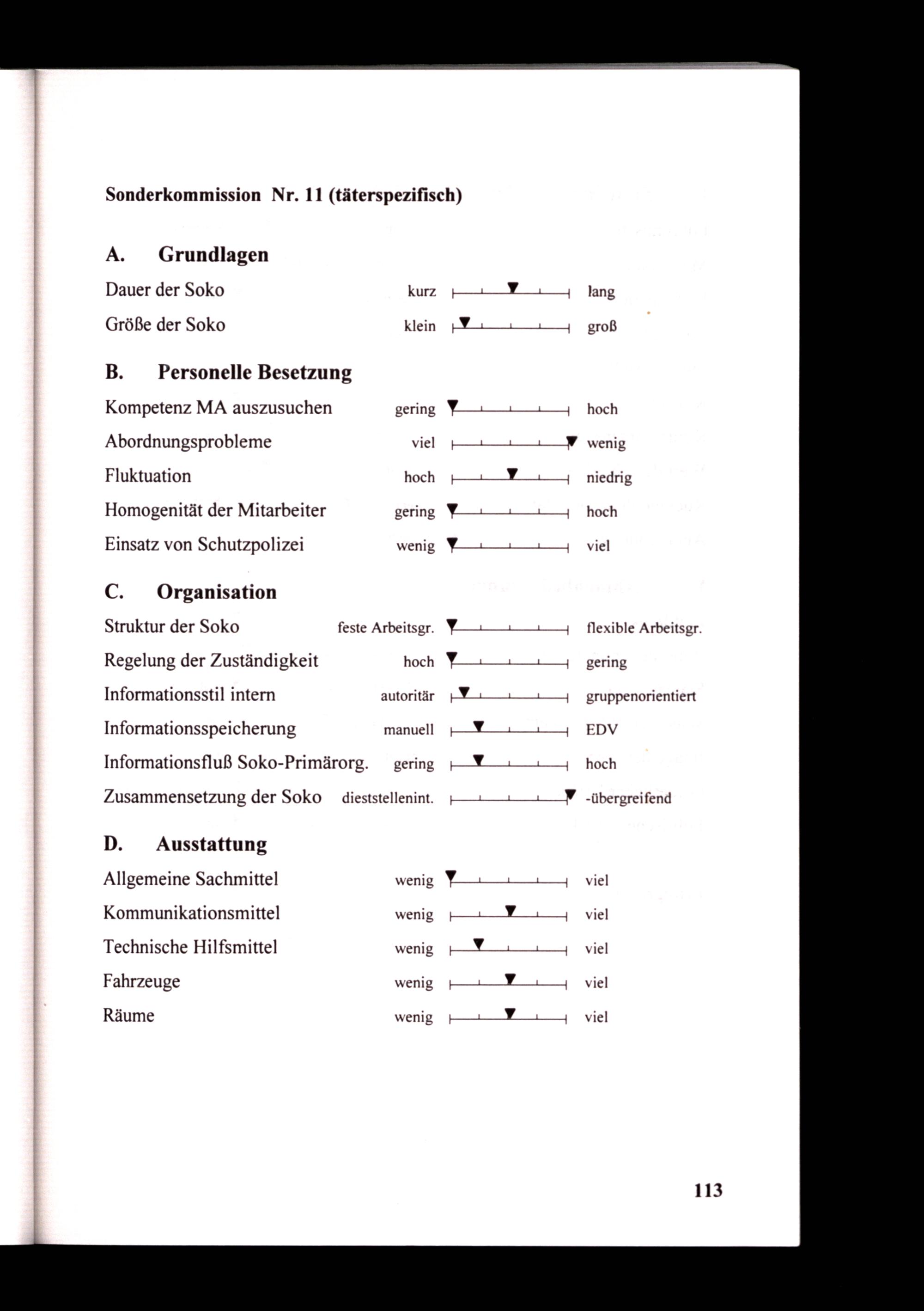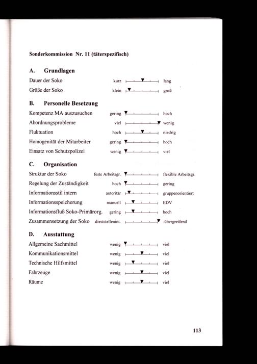 Struktur der Soko feste Arbeitsgr. Regelung der Zuständigkeit hoch Informationsstil intern autoritär Informationsspeicherung manuell Informationsfluß Soko-Primärorg. gering