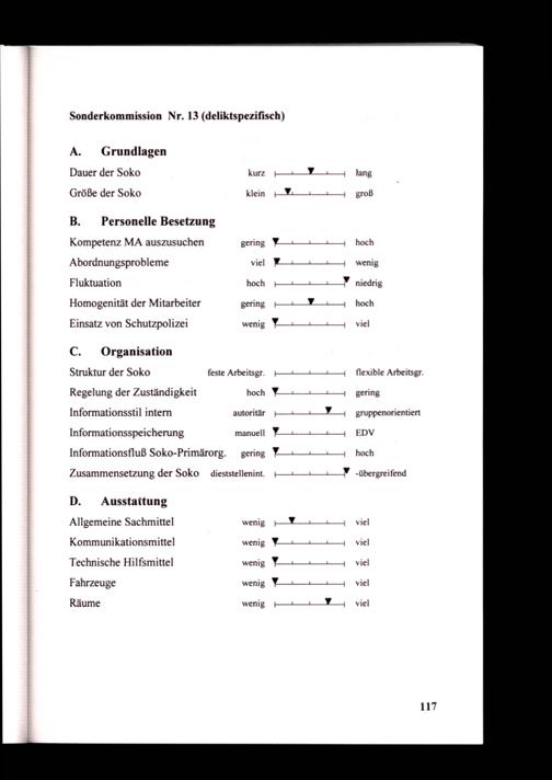 Struktur der Soko feste Arbeitsgr. Regelung der Zuständigkeit hoch Informationsstil intern autoritär Informationsspeicherung manuell