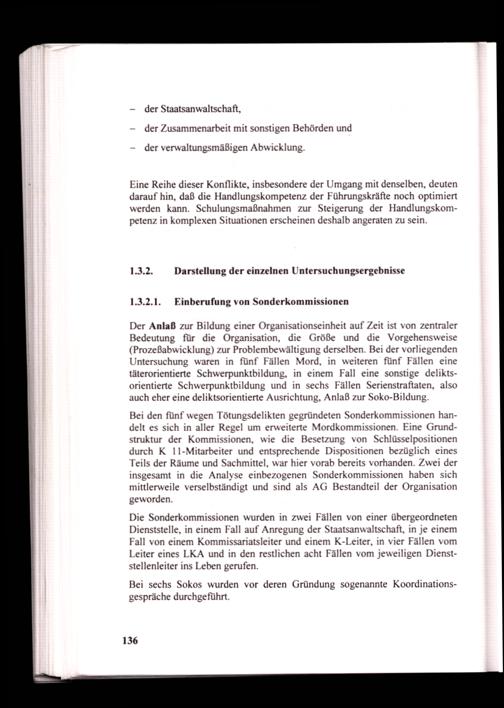 Untersuchung waren in fünf Fällen Mord, in weiteren fünf Fällen eine täterorientierte Schwerpunktbildung, in einem Fall eine sonstige deliktsorientierte Schwerpunktbildung und in sechs Fällen Serienstraftaten, also auch eher eine deliktsorientierte Ausrichtung, Anlaß zur Soko-Bildung.
