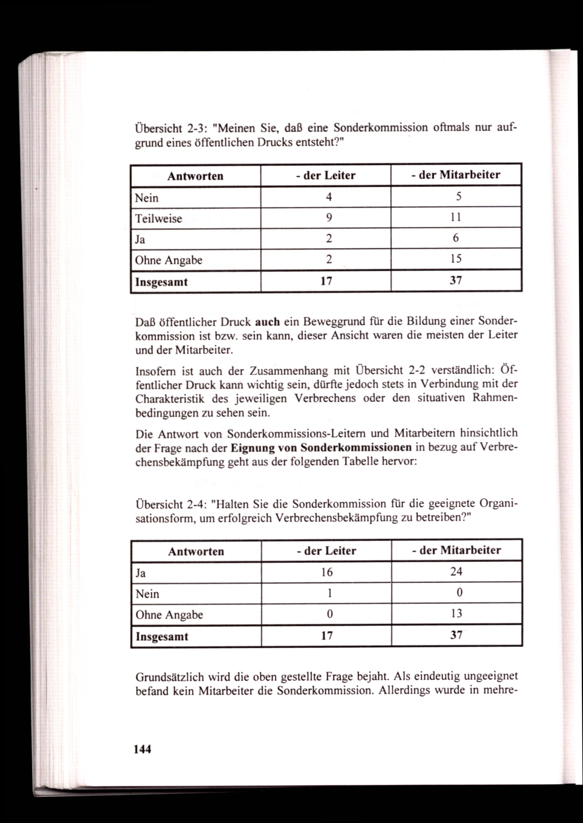 Daß öffentlicher Druck auch ein Beweggrund für die Bildung einer Sonderkommission ist bzw. sein kann, dieser Ansicht waren die meisten der Leiter und der Mitarbeiter.