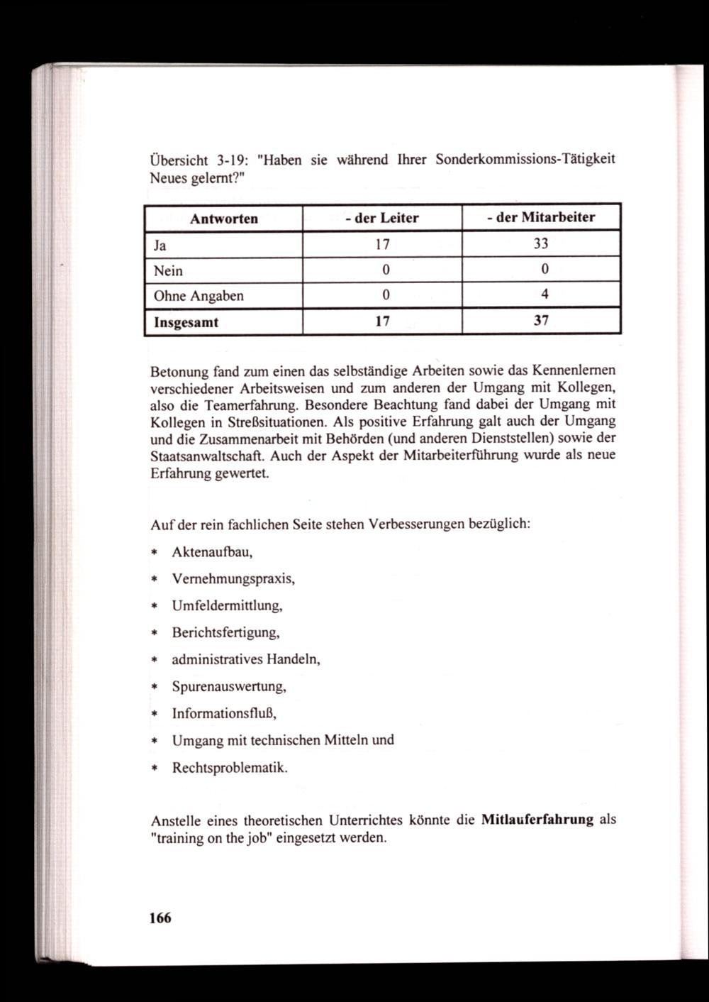 Übersicht 3-19:"Haben sie während Ihrer Sonderkommissions-Tätigkeit Neues gelernt?"