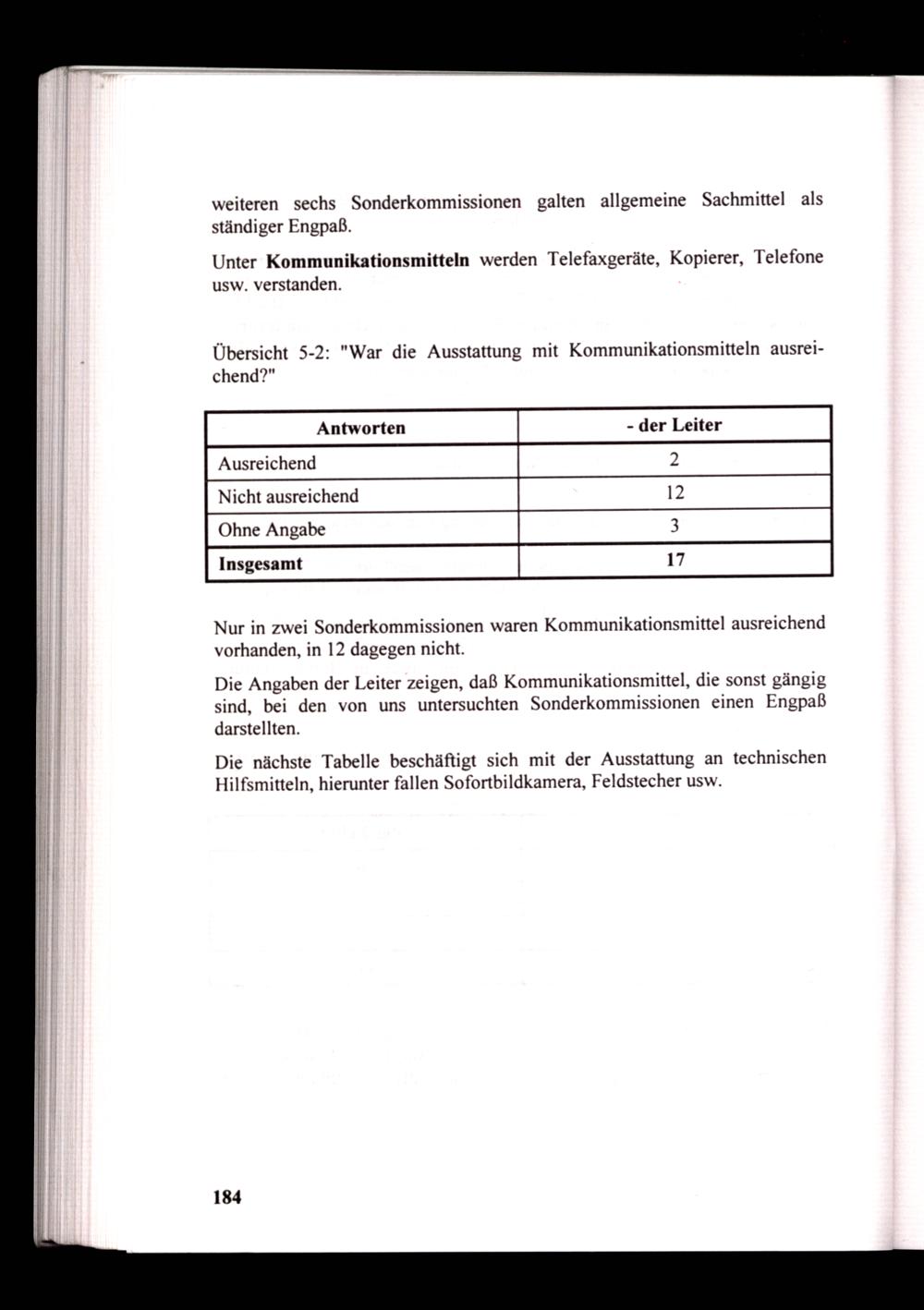 Die Angaben der Leiter zeigen, daß Kommunikationsmittel, die sonst gängig sind, bei den von uns untersuchten Sonderkommissionen einen Engpaß darstellten.