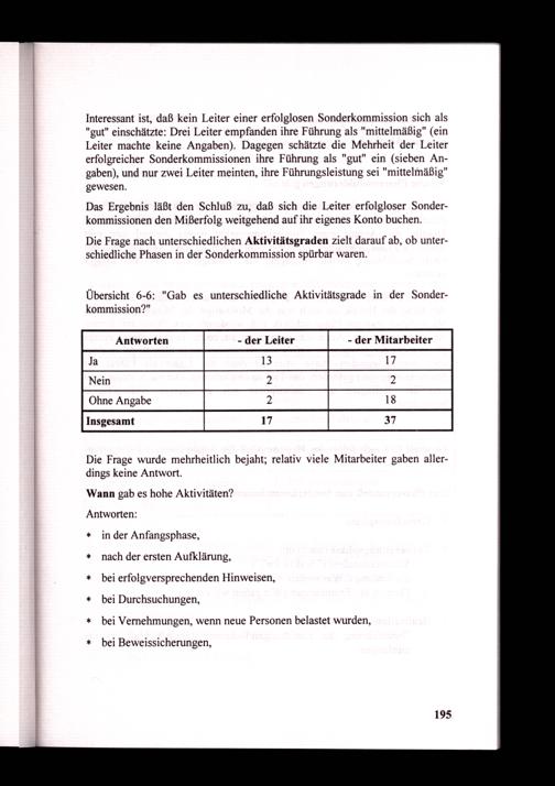 Das Ergebnis läßt den Schluß zu, daß sich die Leiter erfolgloser Sonderkommissionen den Mißerfolg weitgehend auf ihr eigenes Konto buchen.