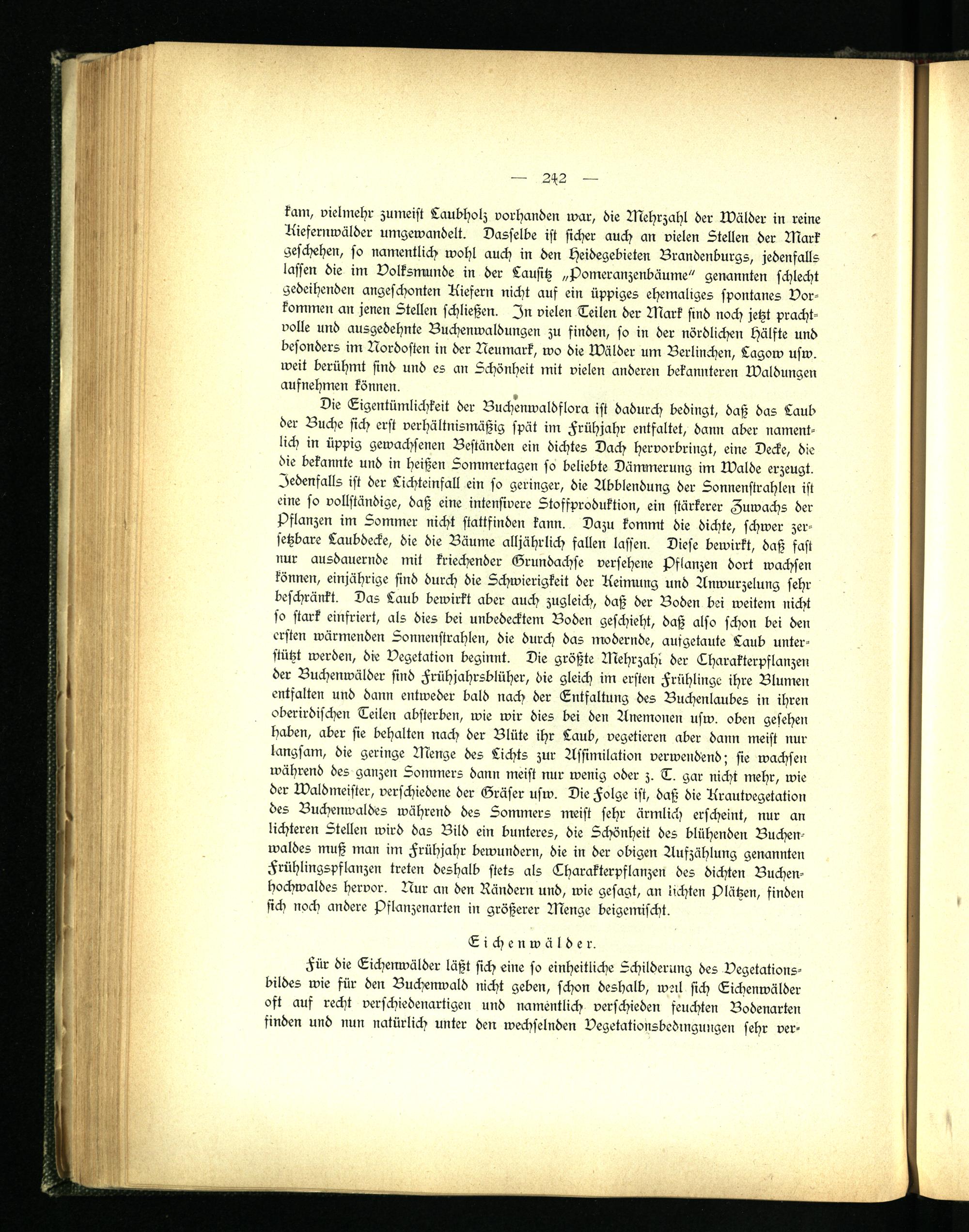 Für die Eichenwälder läßt sich eine so einheitliche Schilderung des Vegetationsbildes wie für den Buchenwald nicht geben, schon deshalb, weil sich Eichenwälder oft auf recht verschiedenartigen und namentlich verschieden feuchten Bodenarten finden und nun natürlich unter den wechselnden Vegetationsbedmgungen sehr ver-