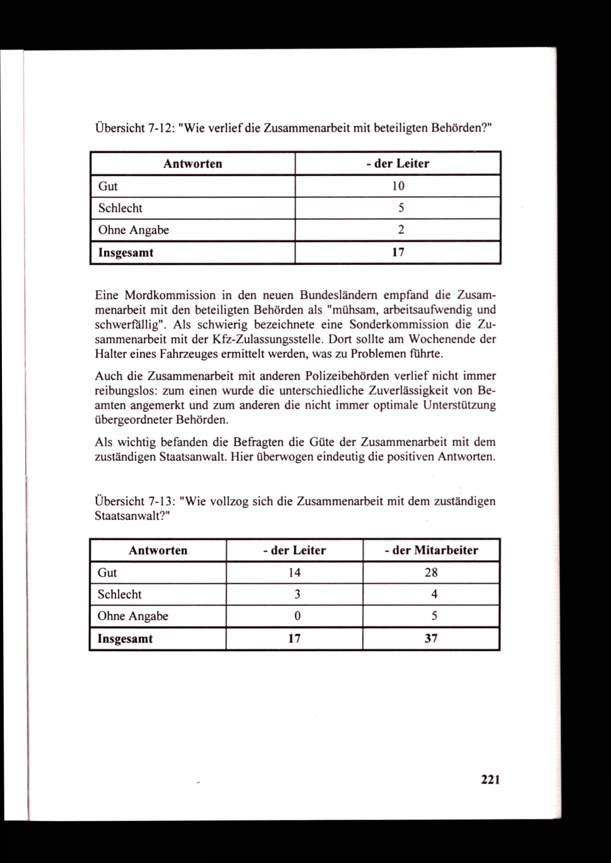 Übersicht 7-13:"Wie vollzog sich die Zusammenarbeit mit dem zuständigen Staatsanwalt?"
