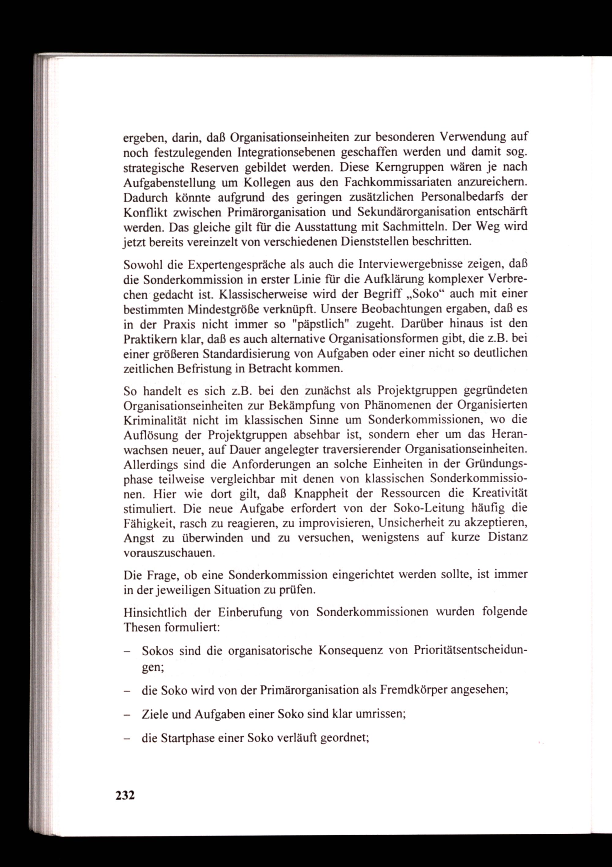 — die Soko wird von der Primärorganisation als Fremdkörper angesehen; — Ziele und Aufgaben einer Soko sind klar umrissen;