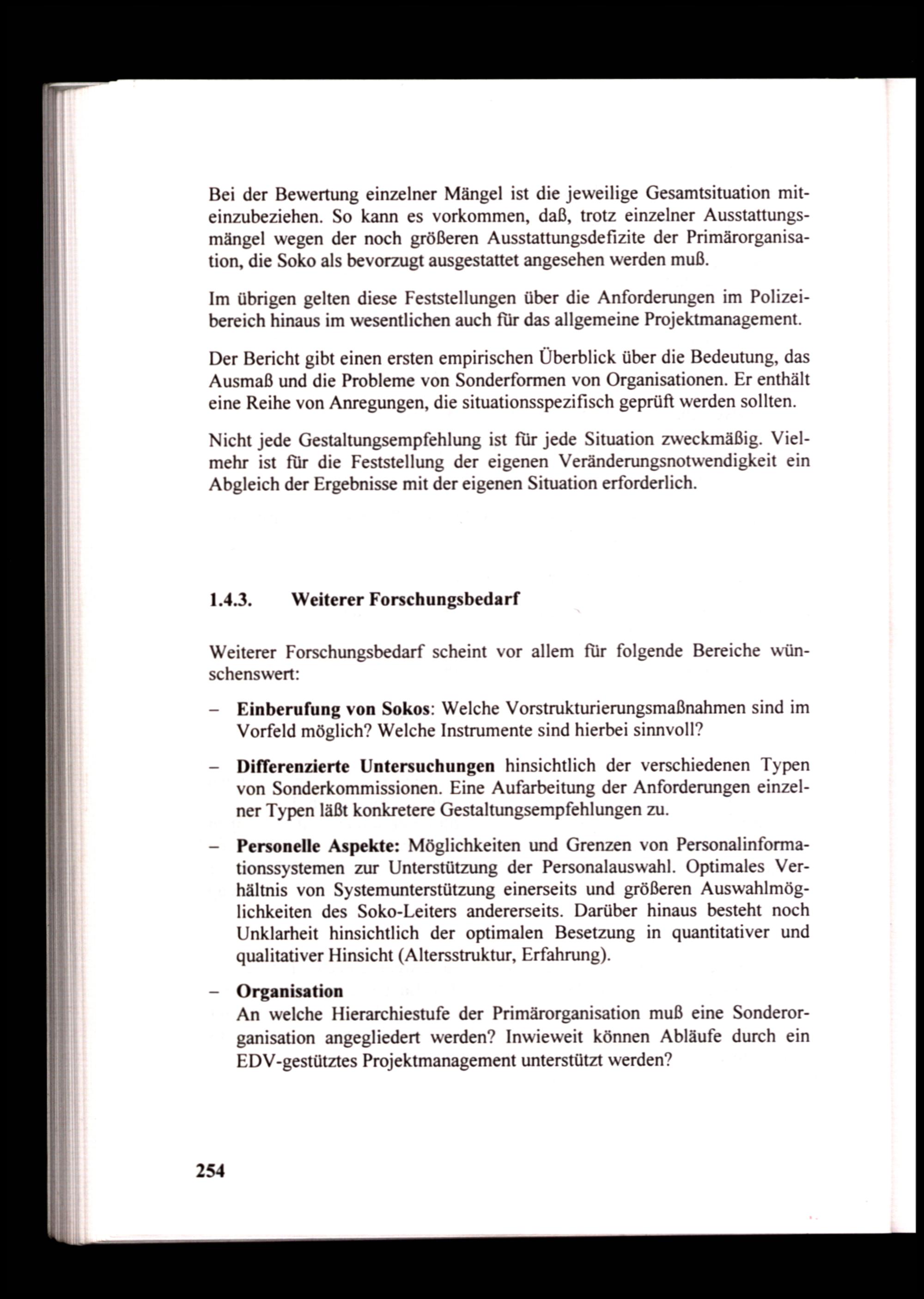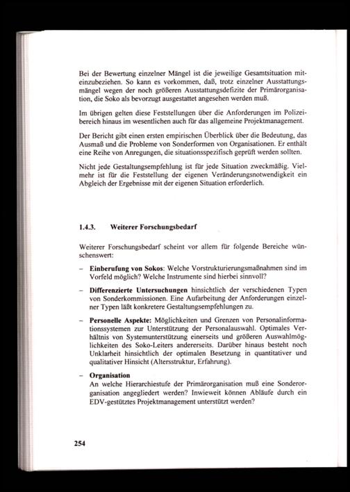 Differenzierte Untersuchungen hinsichtlich der verschiedenen Typen von Sonderkommissionen. Eine Aufarbeitung der Anforderungen einzelner Typen läßt konkretere Gestaltungsempfehlungen zu.