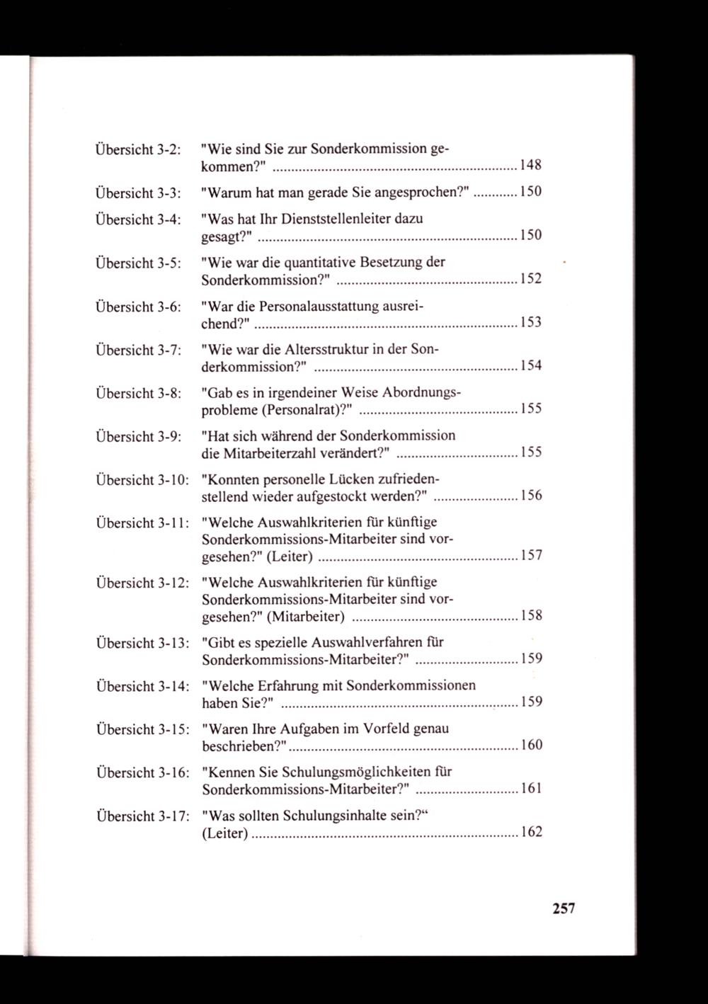 gesehen?”(Mitarbeiter).....................n 158 "Gibt es spezielle Auswahlverfahren für Sonderkommissions-Mitarbeiter?" ‚u. 159 "Welche Erfahrung mit Sonderkommissionen