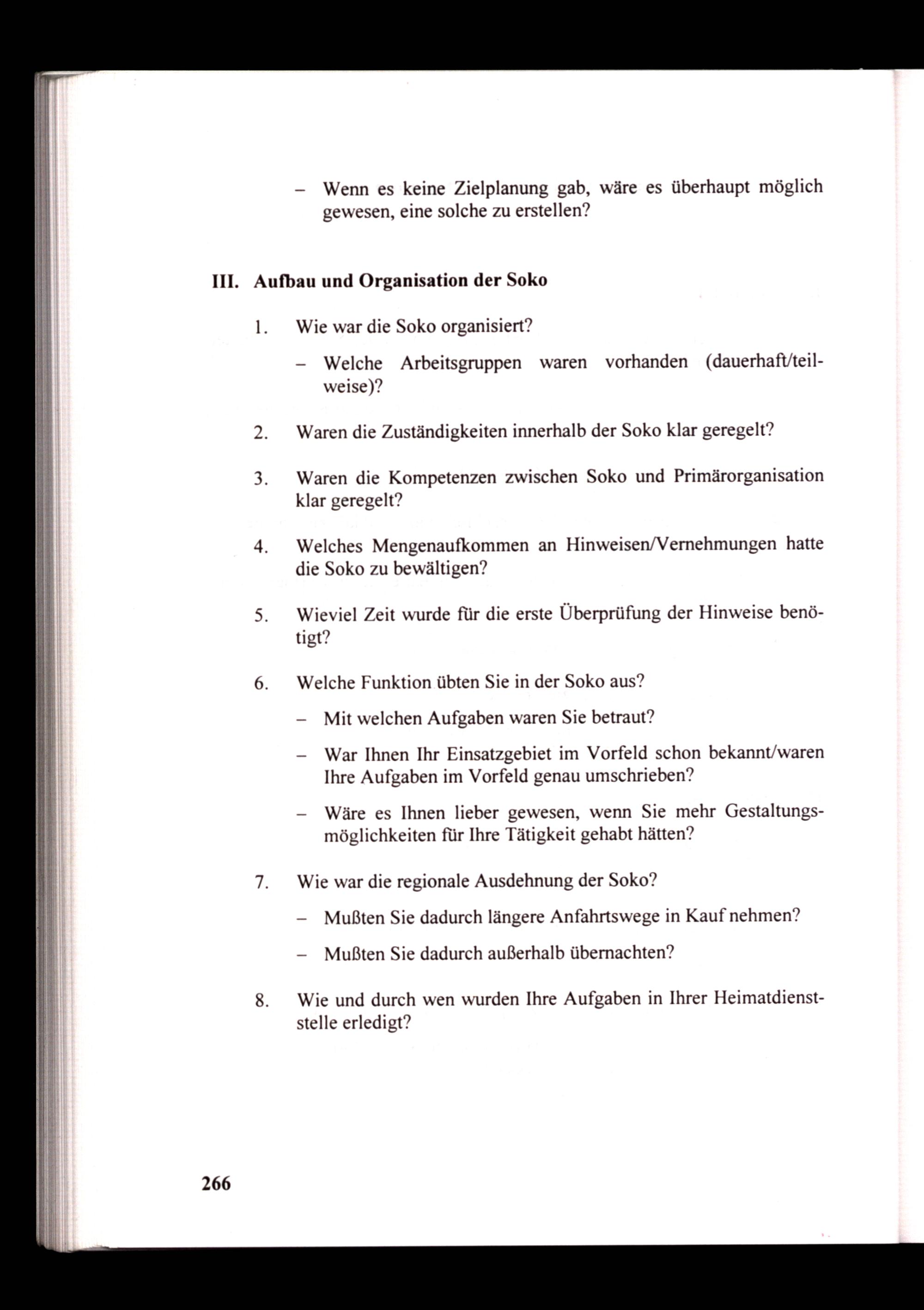 2. Waren die Zuständigkeiten innerhalb der Soko klar geregelt?