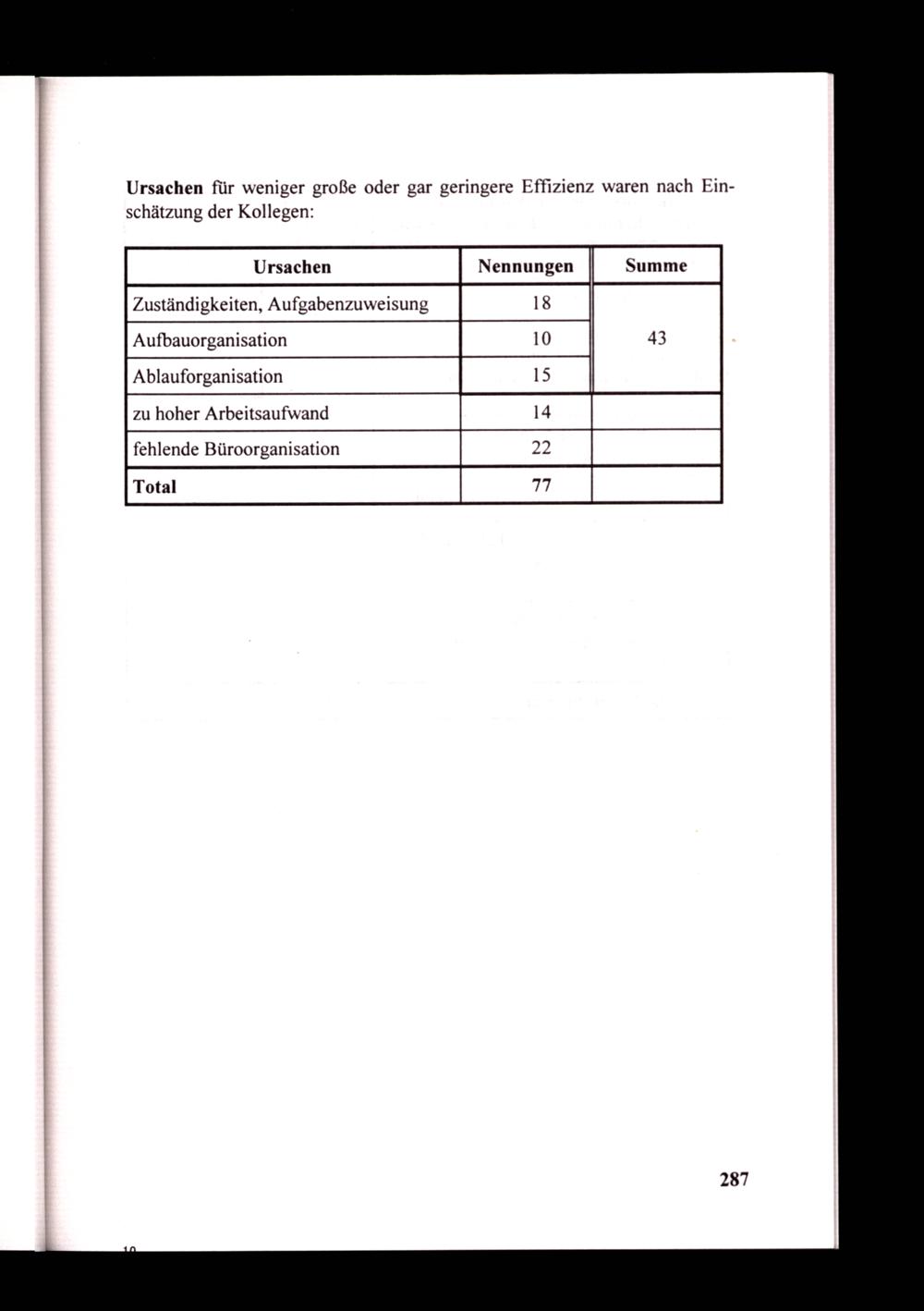 Ursachen für weniger große oder gar geringere Effizienz waren nach Einschätzung der Kollegen: