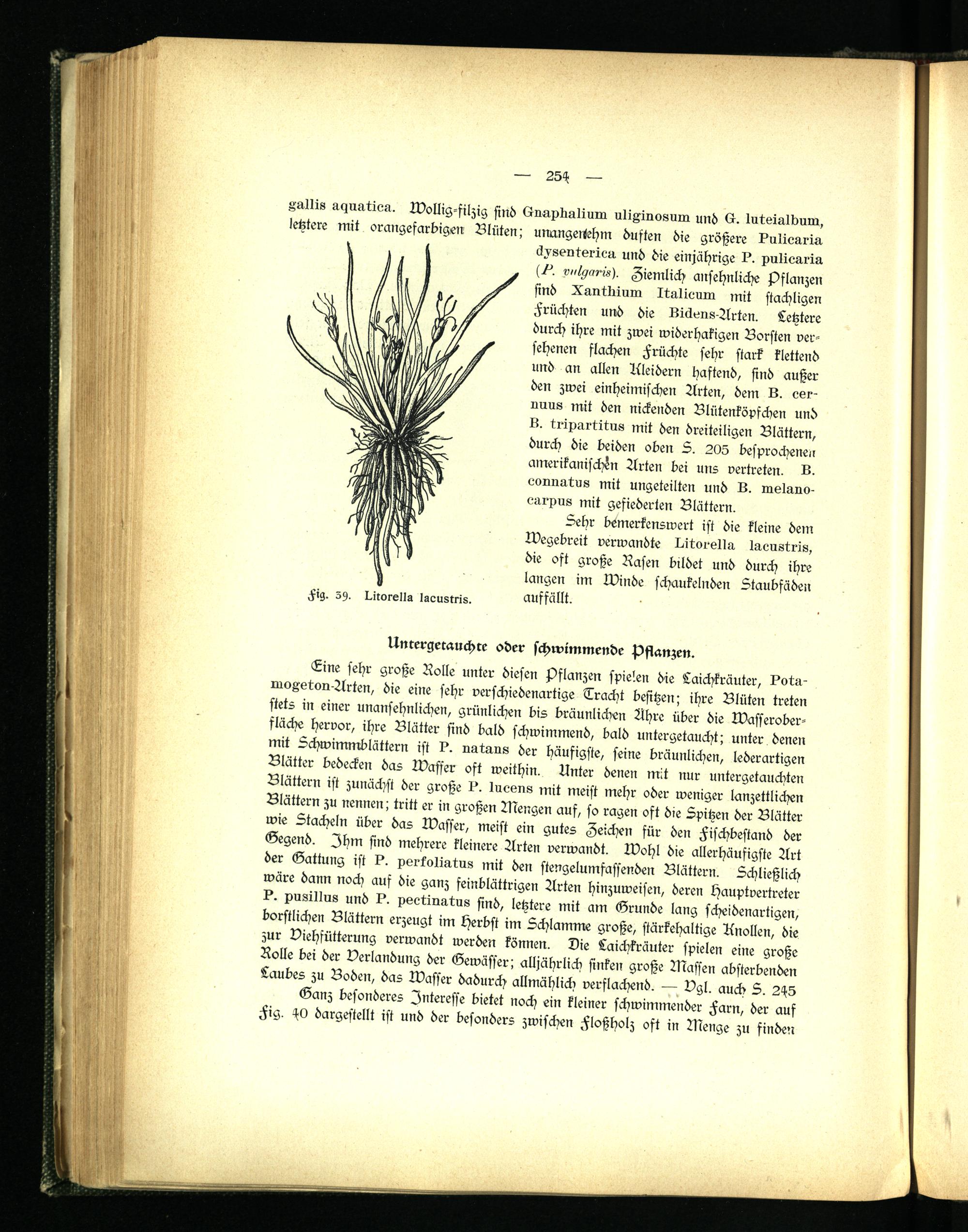 Sehr bemerkenswert ist die kleine dem Wegebreit verwandte Intorellu laeustris, die oft große Rasen bildet und durch ihre langen im Winde schaukelnden Staubfäden Fig. Z9- Inkorella lseustris. auffällt.