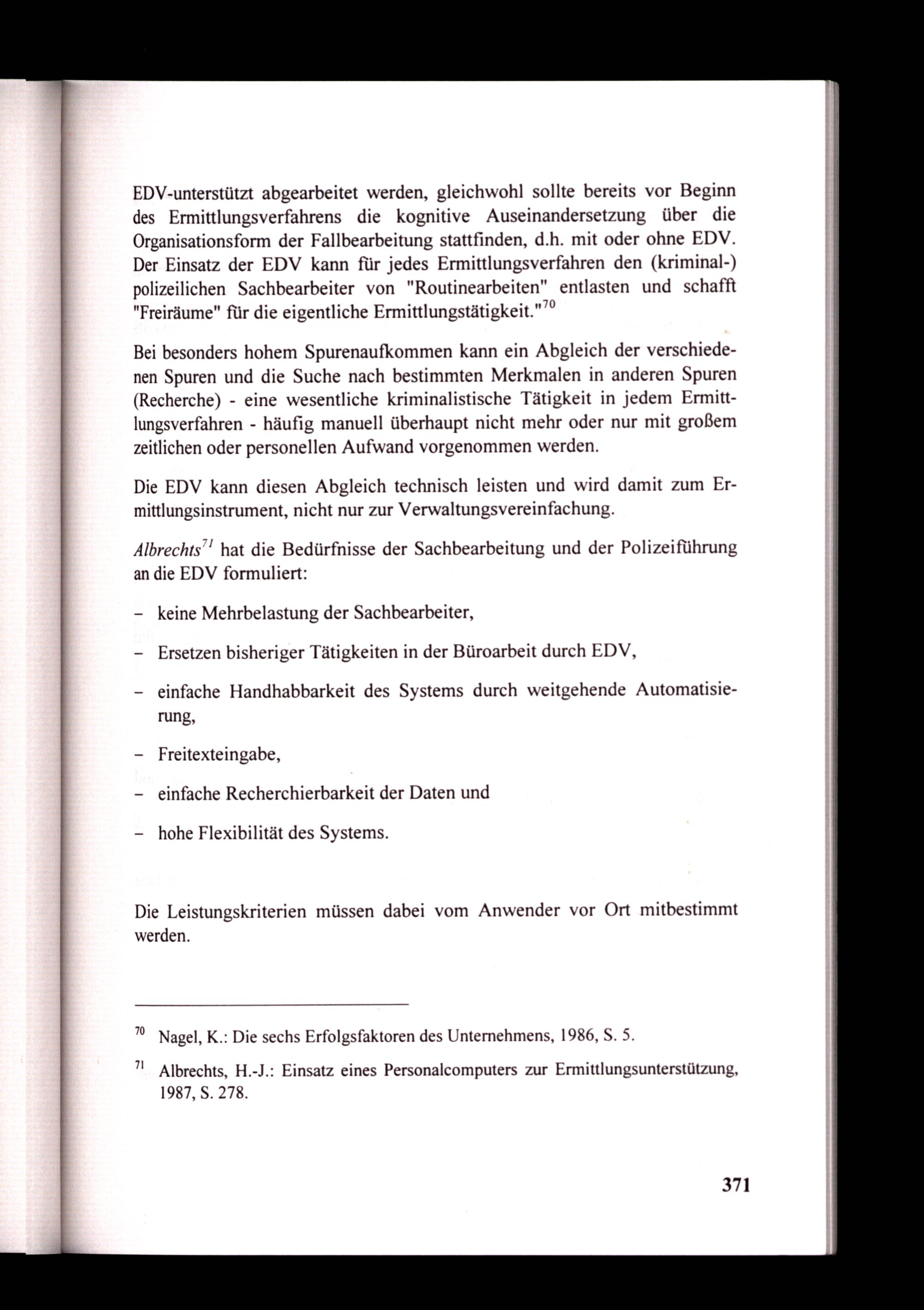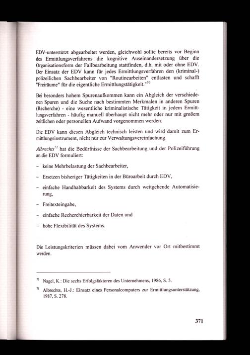 7! Albrechts, H.-J.: Einsatz eines Personalcomputers zur Ermittlungsunterstützung, 1987, S. 278.