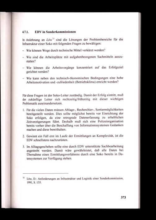 Löw, D.: Anforderungen an Infrastruktur und Logistik einer Sonderkommission, 1991, S. 135.