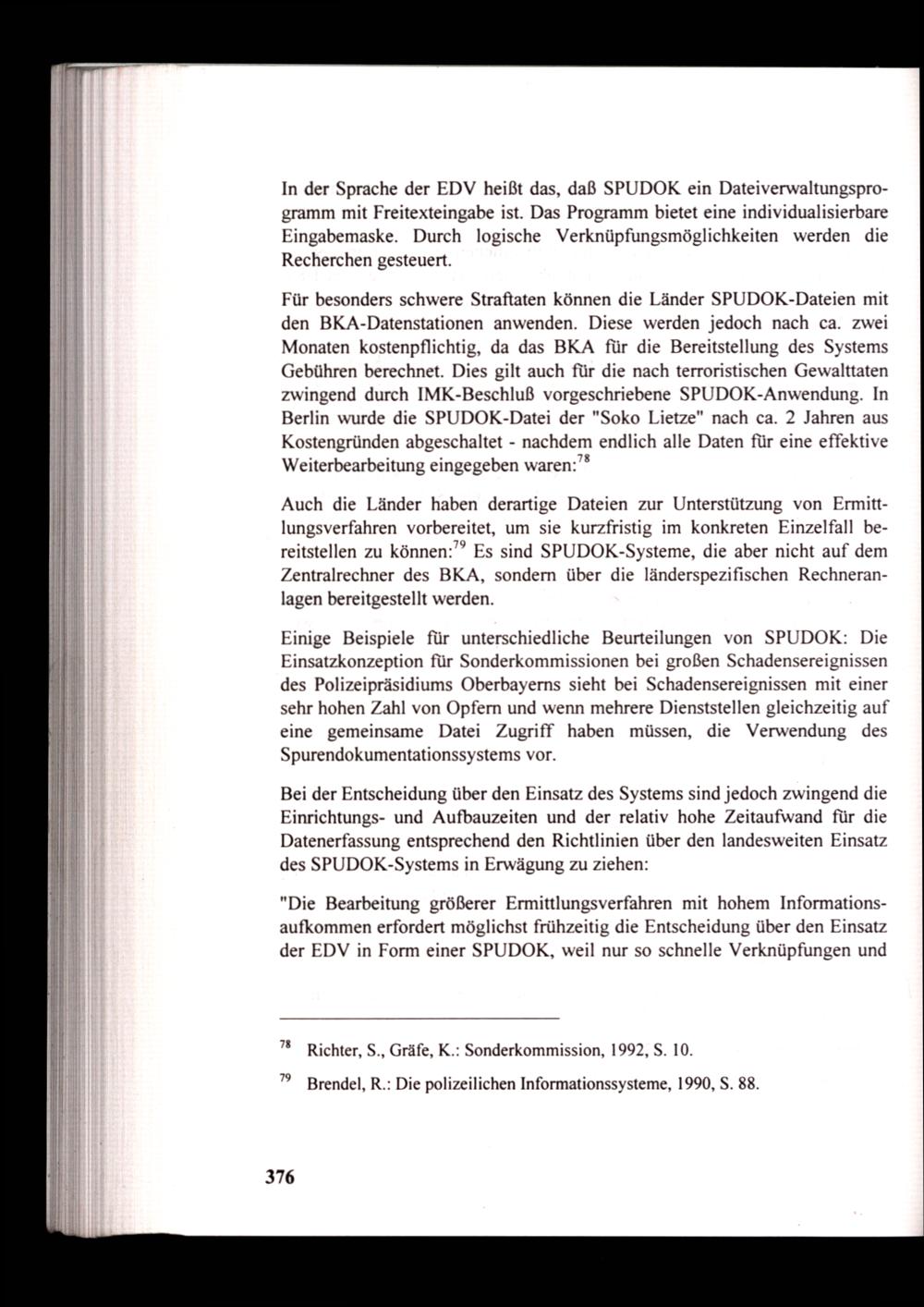 "Die Bearbeitung größerer Ermittlungsverfahren mit hohem Informationsaufkommen erfordert möglichst frühzeitig die Entscheidung über den Einsatz der EDV in Form einer SPUDOK, weil nur so schnelle Verknüpfungen und
