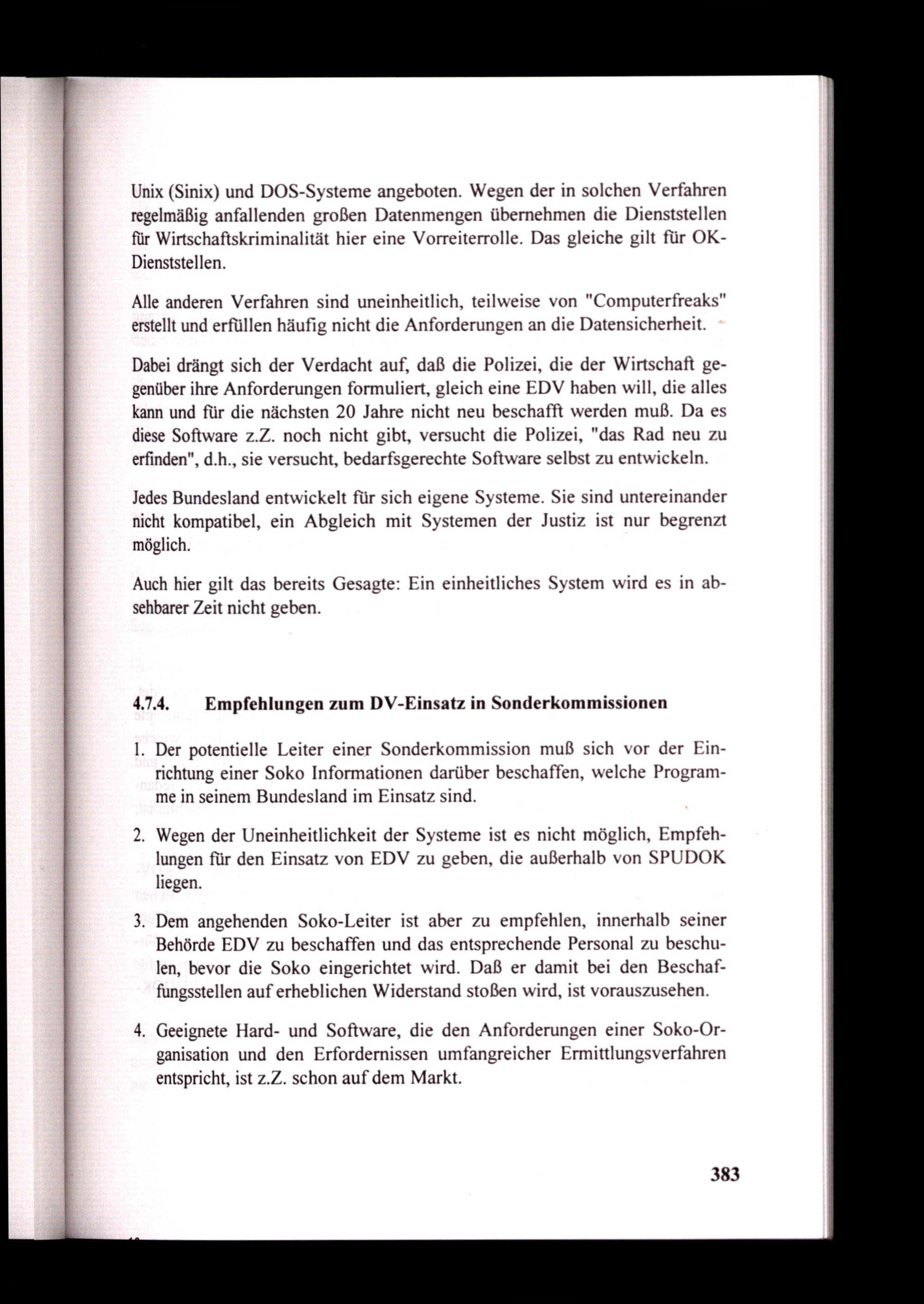 4.7.4. Empfehlungen zum DV-Einsatz in Sonderkommissionen